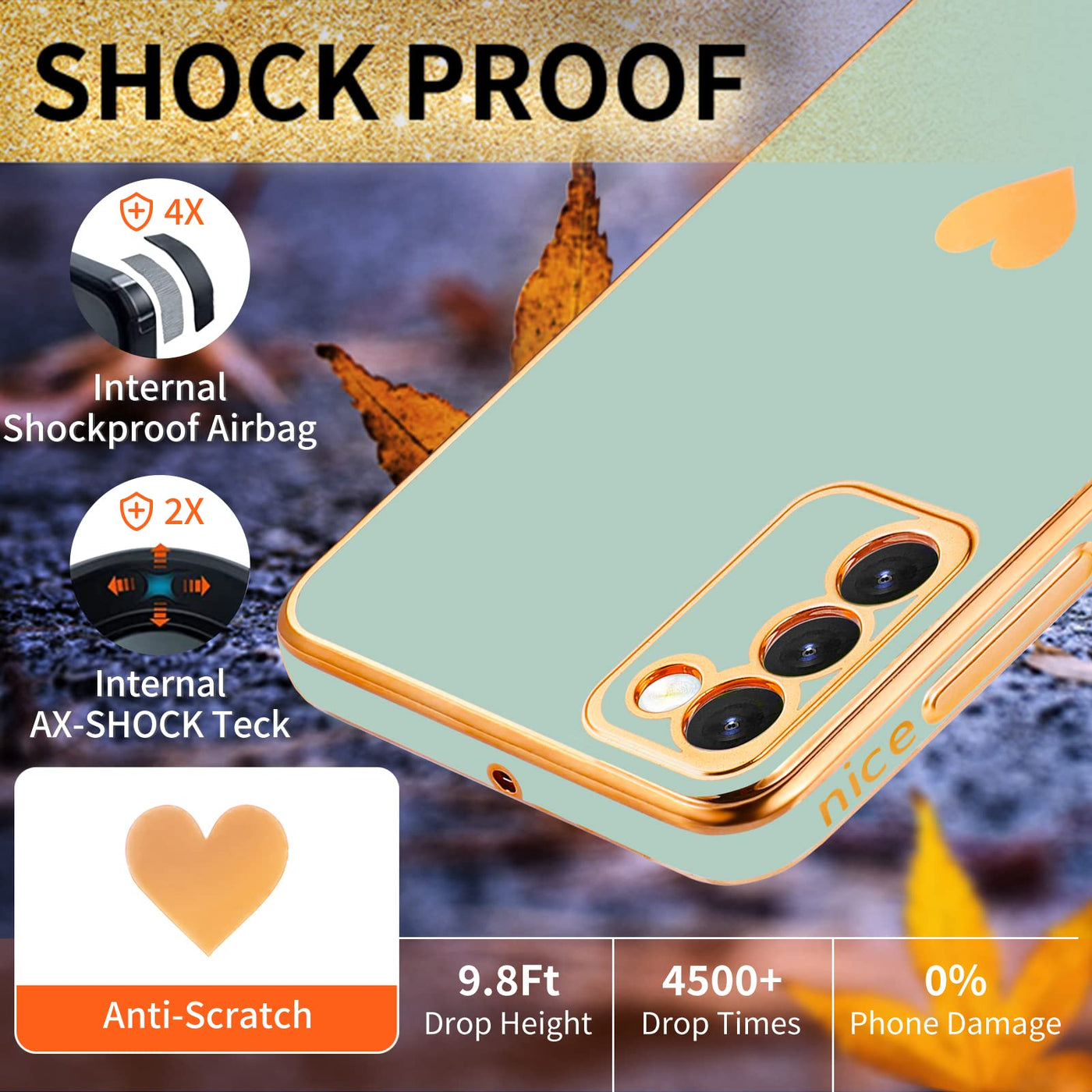 Shorogyt (3In1 Heart Case For Samsung Galaxy S20 Fe 5G/4G 6.5 Inch Women Cute Aesthetic Love Hearts Pattern Girls Light Blue Gol