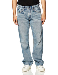 Silver Jeans Co Mens Gordie Loose Fit Straight Leg Jeans, Light Indigo, 33W X 30L