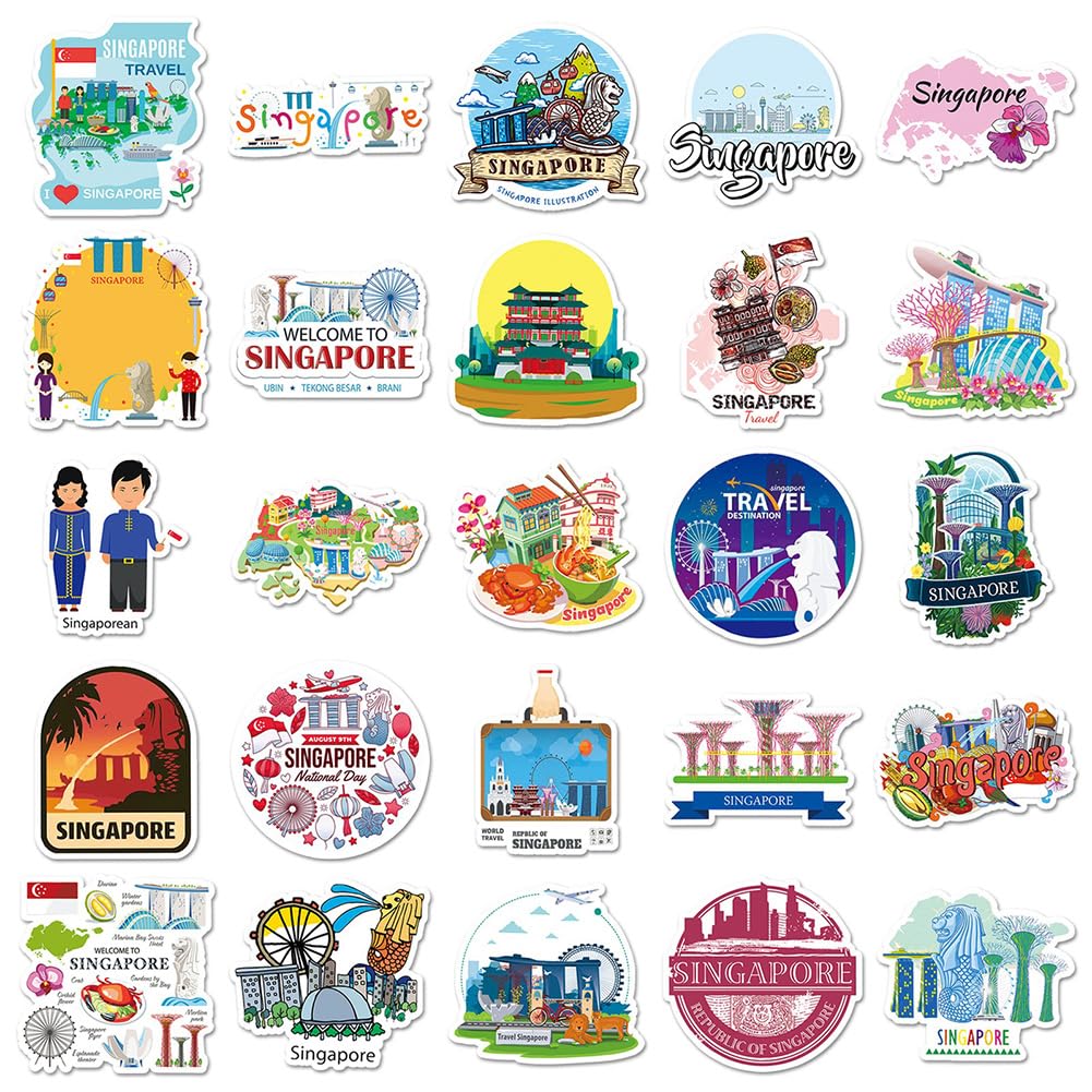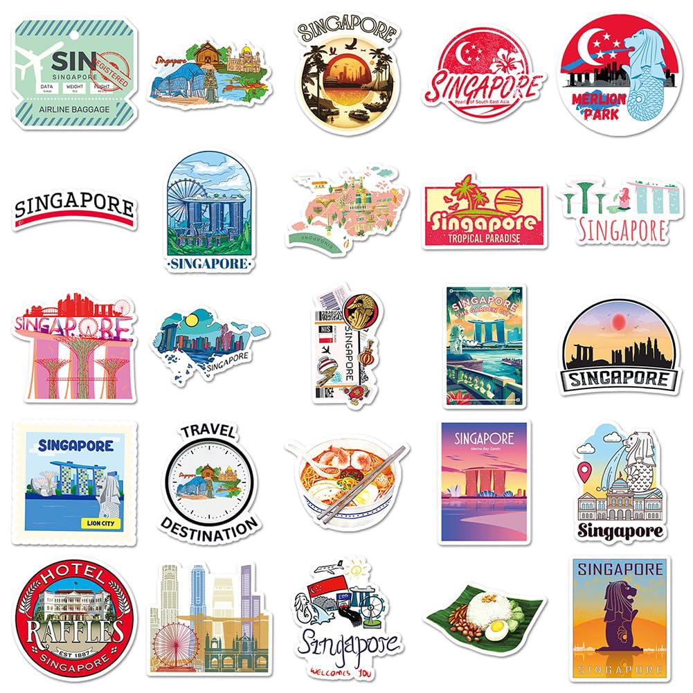 Singapore Travel Stickers |50Pcs Singaporean Waterproof Vinyl Decals For Bike Water Bottles Laptop Bicycle Refrigerator Cup Lugg