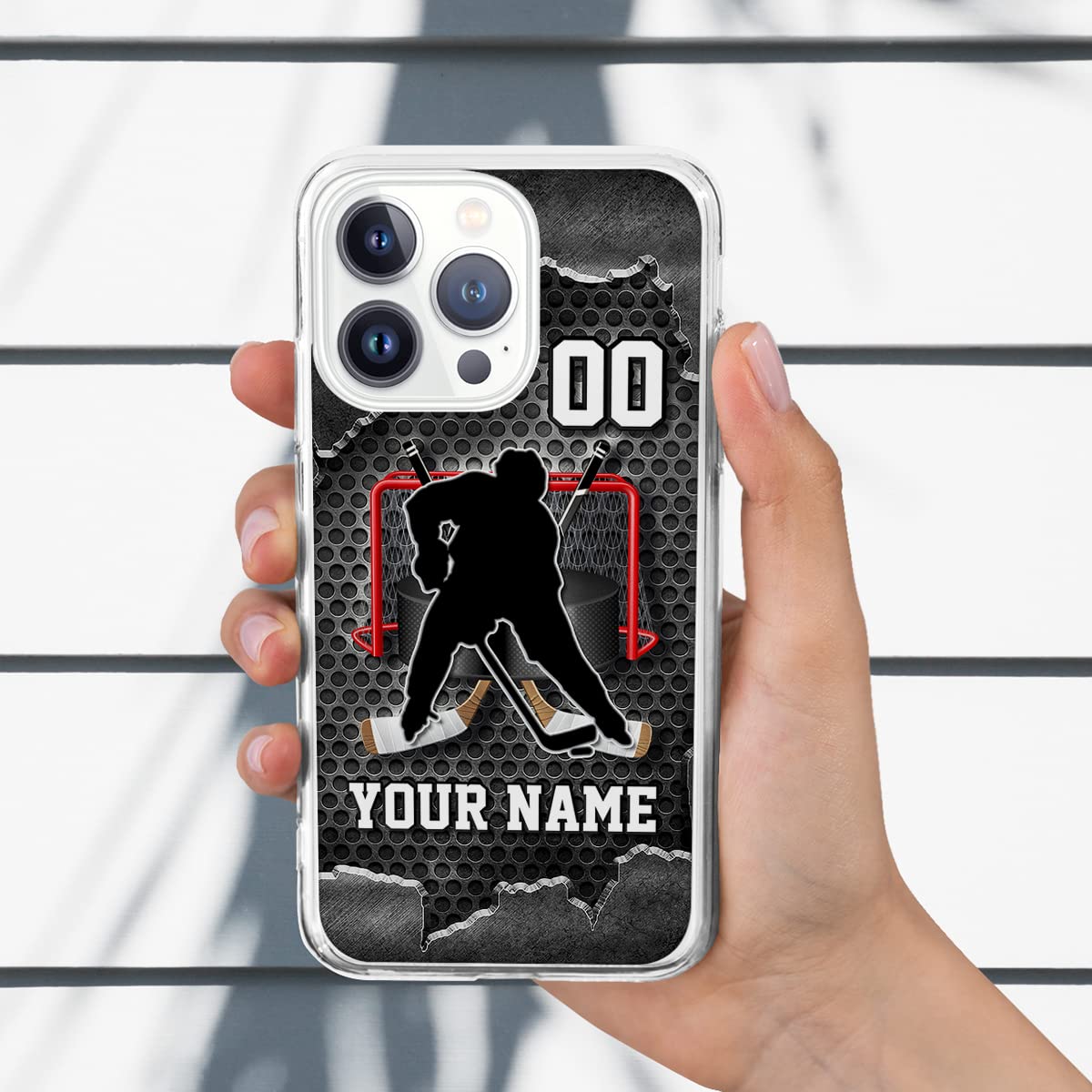 Q: Is this personalized hockey phone case compatible with my iPhone model?A: Yes, the personalized hockey phone case is compatible with various iPhone models including X, XS, XS Max, XR, 11, 11 Pro, 11 Pro Max, 12, 12 Mini, 12 Pro, 12 Pro Max, 13, 13 Mini, 13 Pro, and 13 Pro Max.