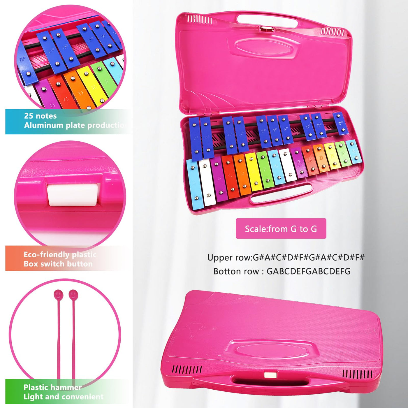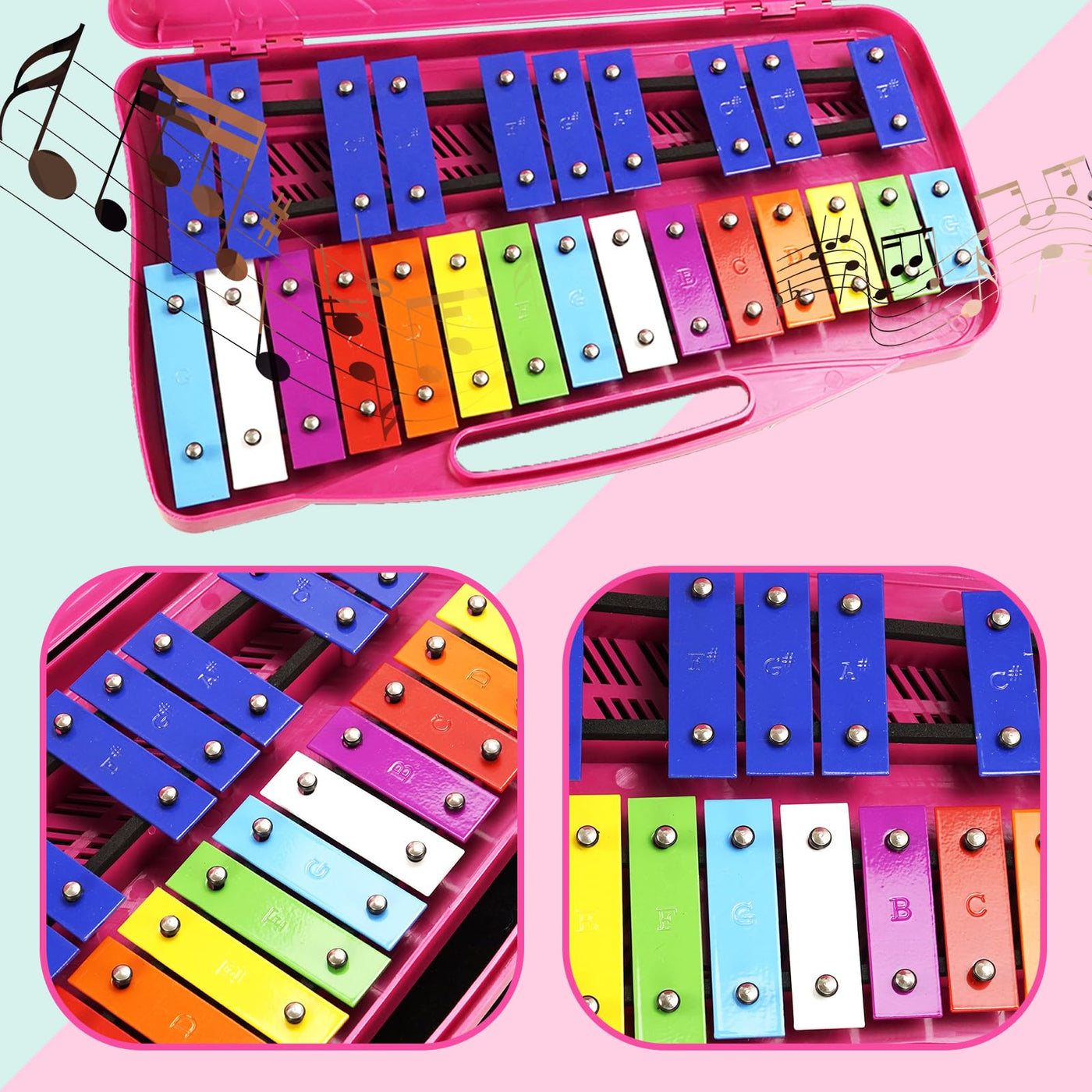 Soulmate Xylophone,25 Notes Glockenspiel Xylophone For Kids Colorful Musical Toy Metal Keys,Professional Xylophone Instrument Wi