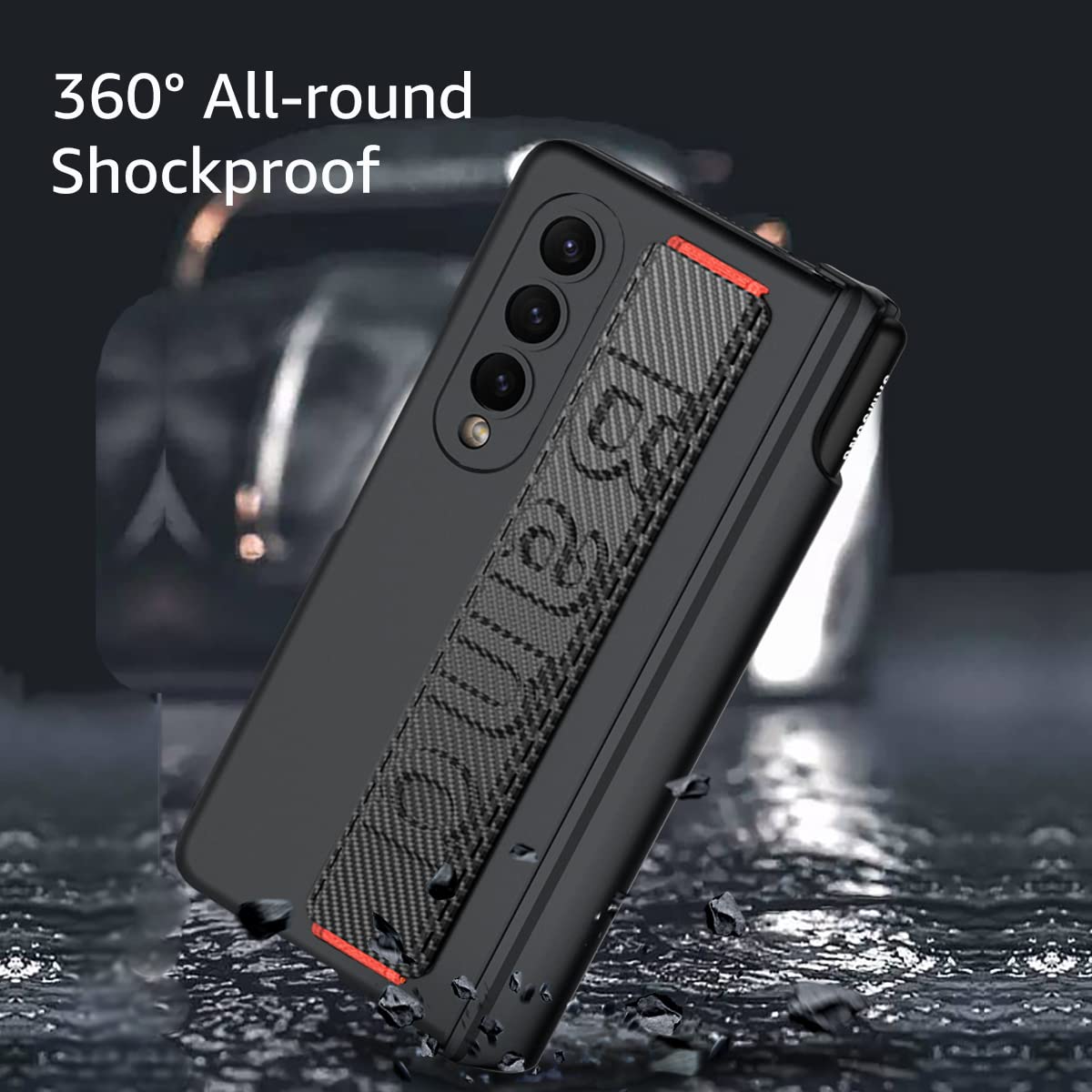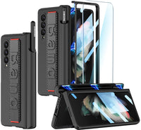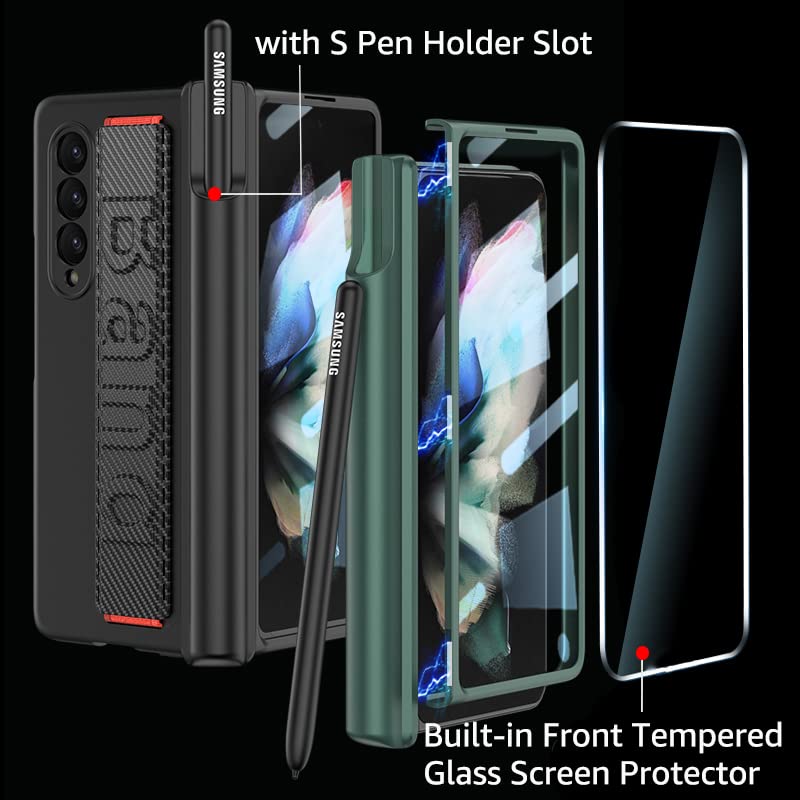 Soutem For Samsung Galaxy Z Fold 3 Case With Wrist Strap & Screen Protector & S Pen Slot,Magnetic Hinge Protective Bumper Case U