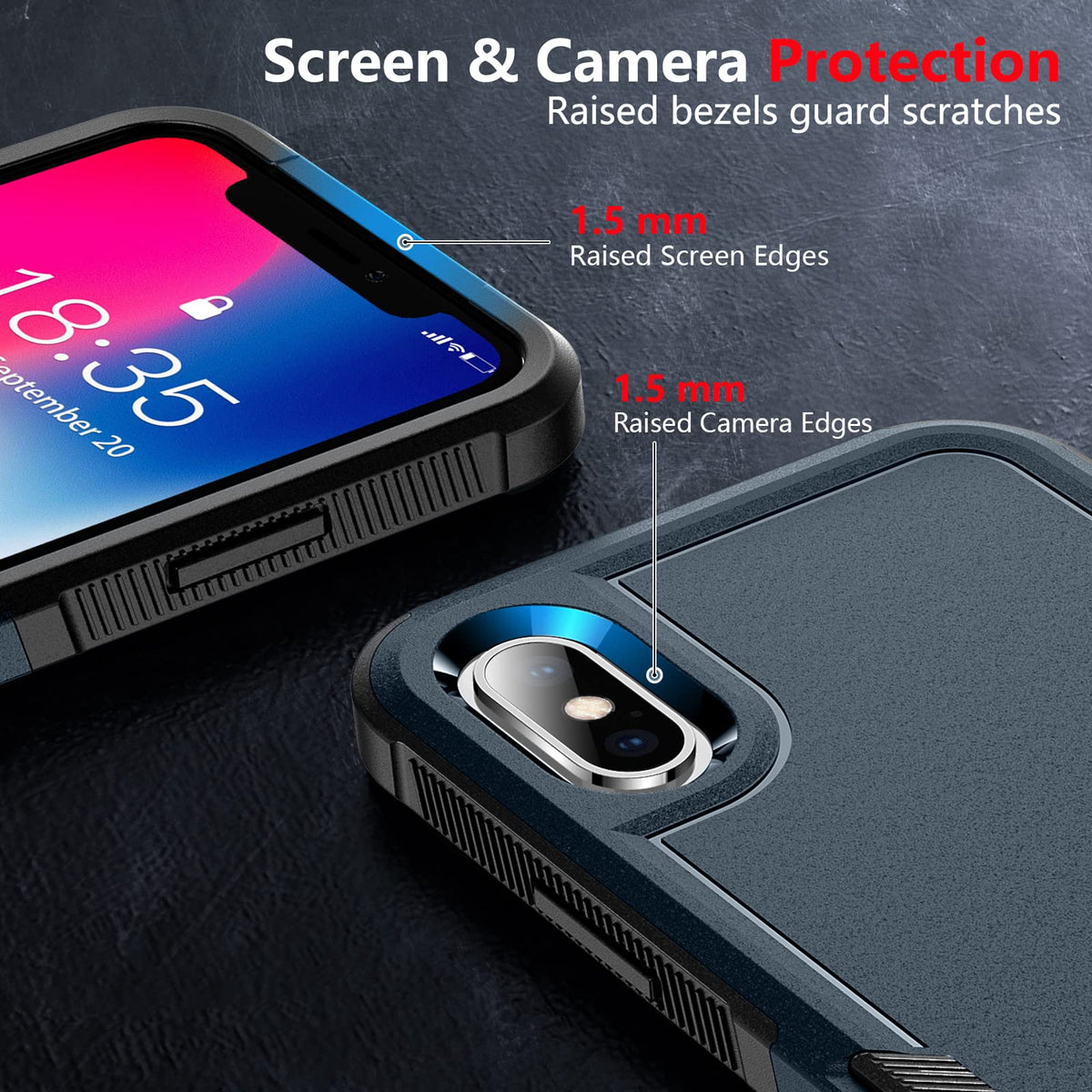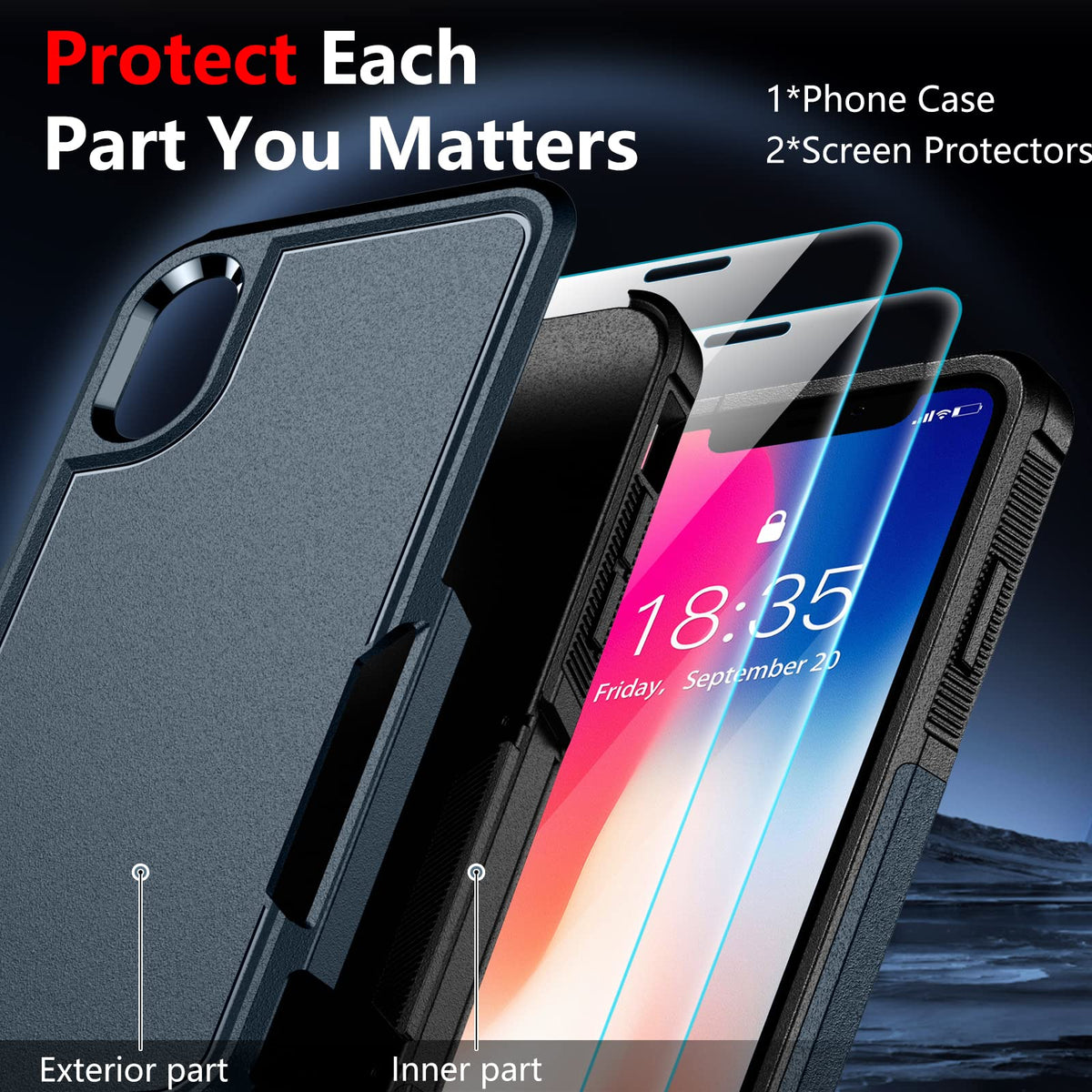 Spidercase For Iphone X/Xs Case,[Dual Layer][10 Ft Military Grade Drop Protection] [Non Slip] [2 Pcs Tempered Glass Screen Prote