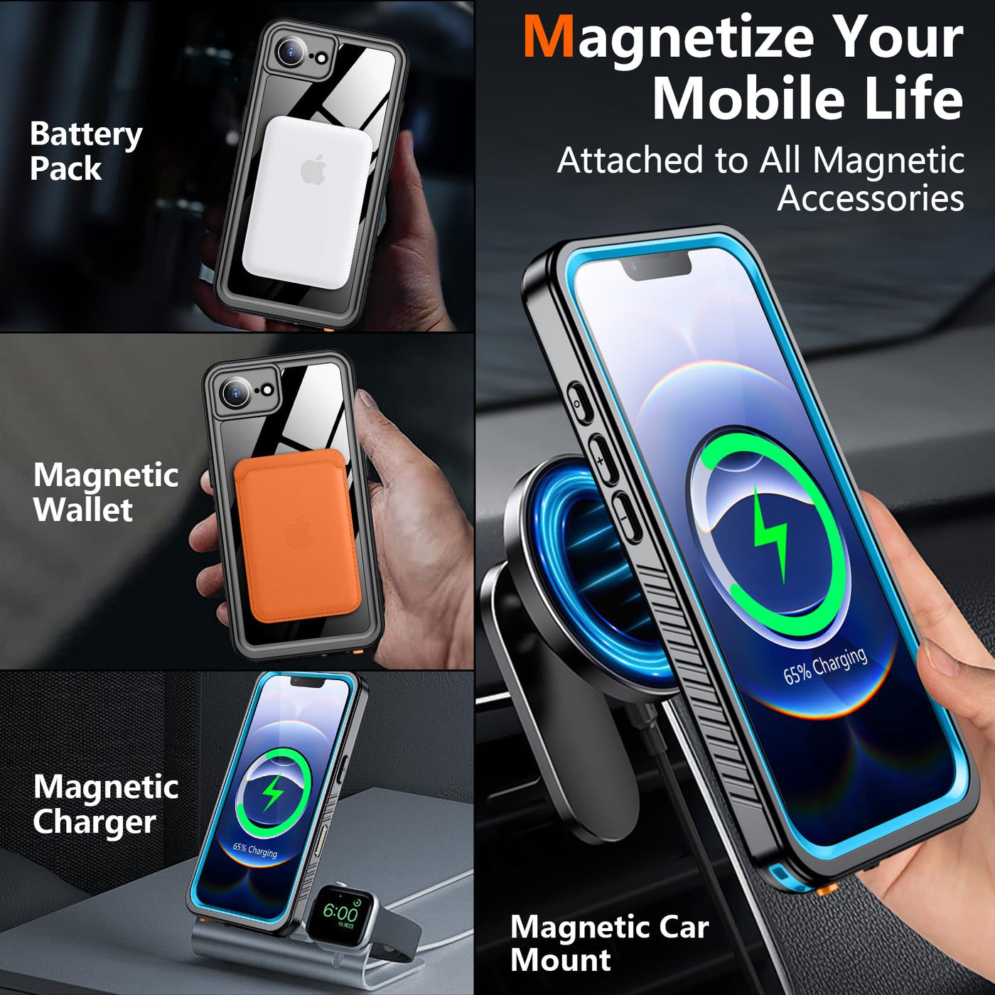Spidercase Magnetic For Iphone 16E Case Waterproof,Built-In Screen & Camera Lens Protector[Ip68 Underwater] [Military Grade Shoc