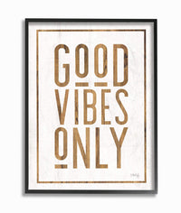Stupell Industries Good Vibes Only Rustic White And Exposed Wood Look Sign Black Framed Wall Art, 24 X 30, Multi Color