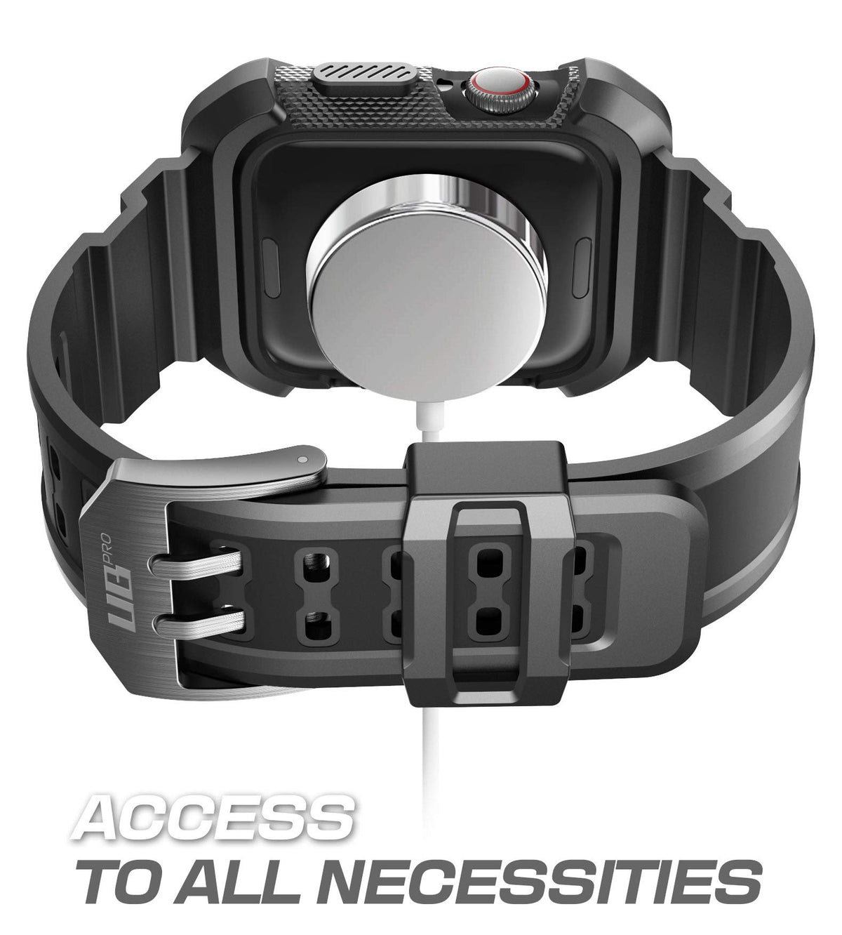 Q: How does the SUPCASE protect my Apple Watch?A: The SUPCASE features a rugged UB Pro bumper that provides shock absorption and a raised bezel, which helps protect the screen from scratches and damage. It also includes a scratch-resistant built-in watch band.