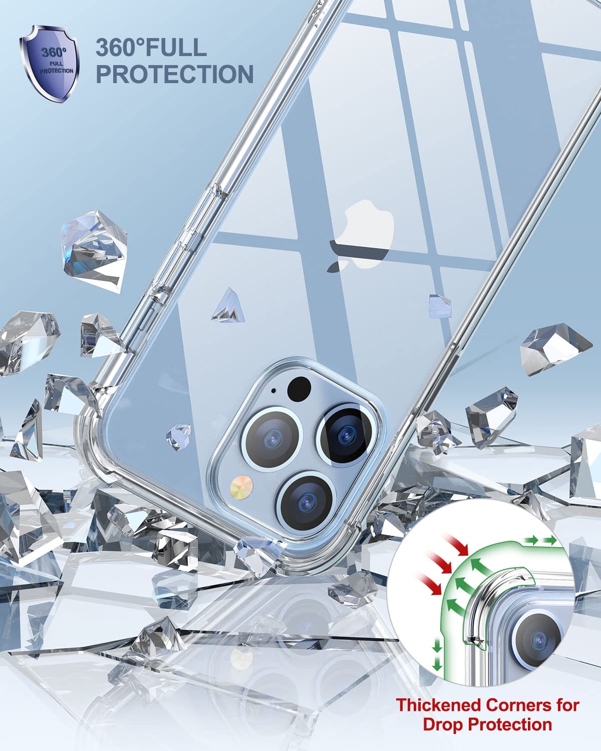 Suritch For Iphone 13 Pro Clear Phone Case 6.1 Inches. Full Body Protection Hard Pc+ Soft Tpu Bumper Shockproof Rugged Phone Cover For Iphone 13 Pro