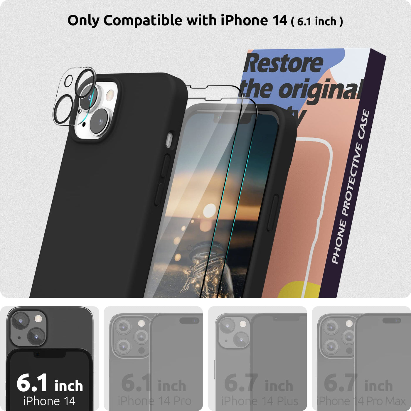 Surphy (4 In 1) Designed For Iphone 14 Case Compatible With Magsafe (61 Inch, 2022), With 2 Pack Screen Protector + Camera Cover, Liquid Silicone Phone Case (Black)