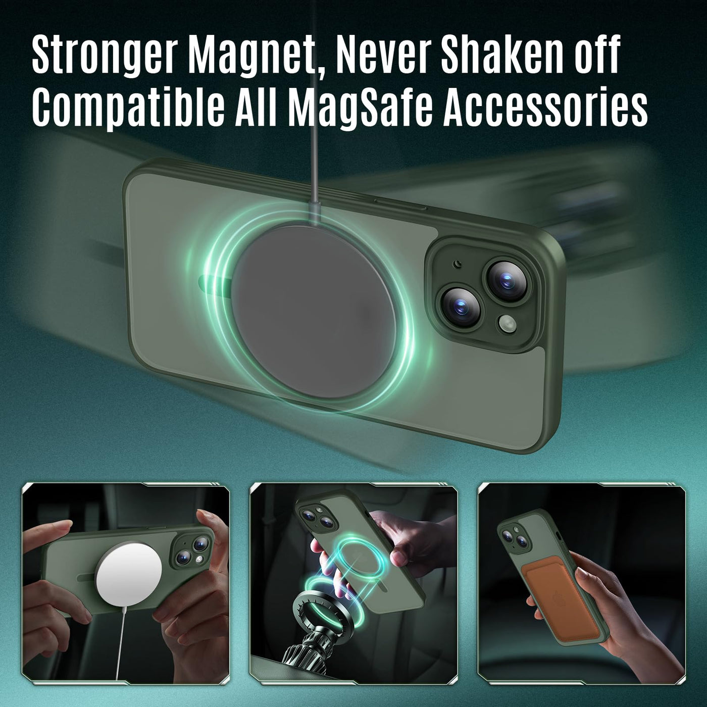 Q: Is the Symcele iPhone 15 case compatible with MagSafe accessories?A: Yes, the Symcele Designed for iPhone 15 Case features a built-in N52 magnetic ring, making it 50% stronger than official MagSafe cases. This ensures compatibility with all MagSafe accessories, including magnetic chargers, car mounts, and wallets.