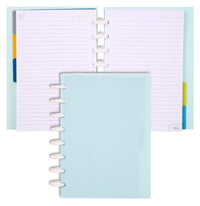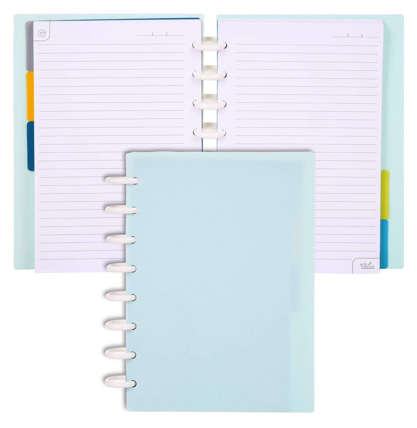 Talia Discbound Notebook, Summer Blue Junior Size, 55X85In Heavyweight Paper, Includes: Undated Monthly Calendar Pages, 5 Tab Dividers, Clear Pocket, 100 Sheets Lined Paper, Fun Stickers, 1 Set Of Poly Covers, And Set Of White Expansion Discs