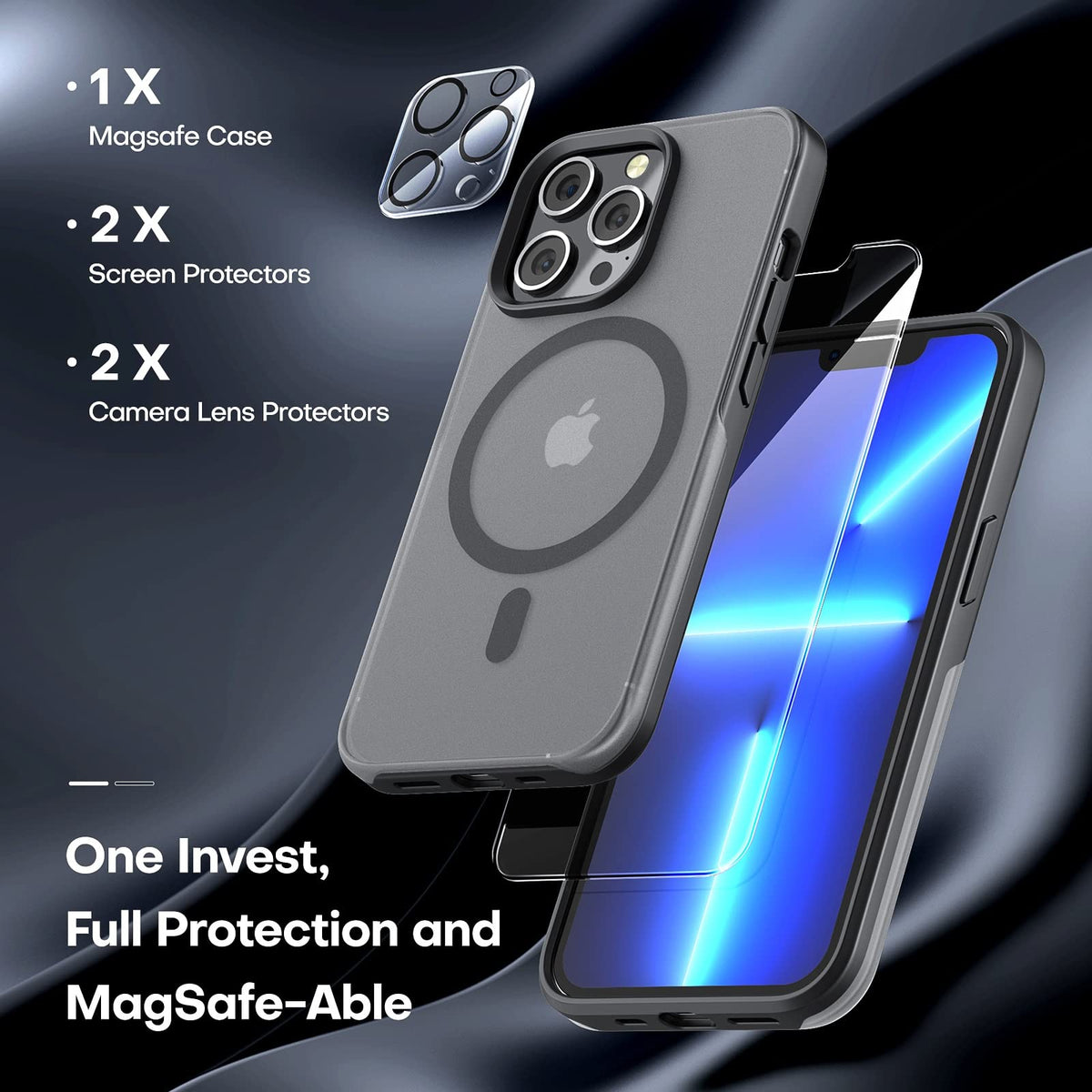 Tauri 5 In 1 Magnetic For Iphone 13 Pro Max Case, [Designed For Magsafe] With 2X Screen Protector + 2X Camera Lens Protector, Military Grade Protection Phone Case Matteblack