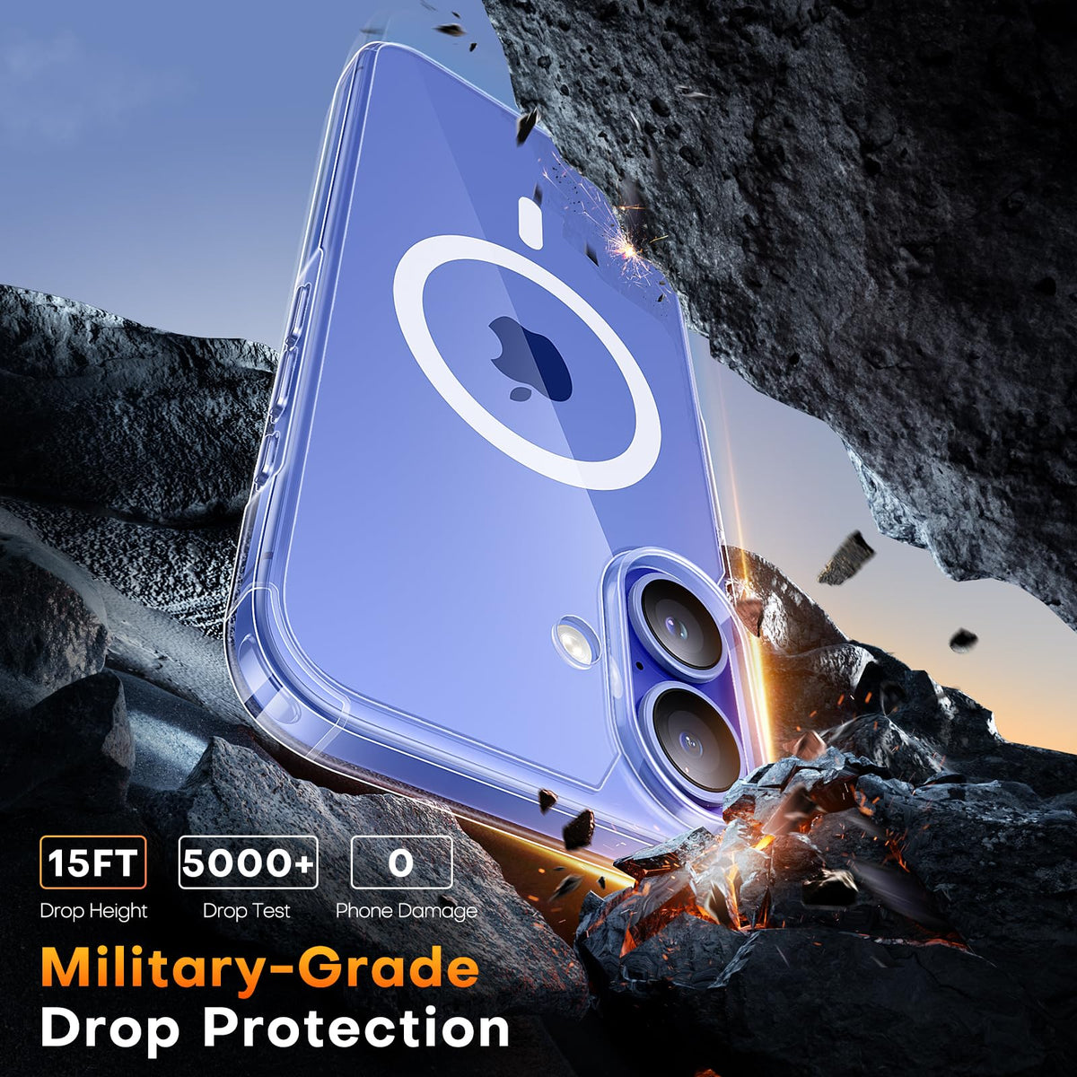 Q: What materials are used in the TAURI iPhone 16 case?A: The TAURI case is made from high-grade Thermoplastic Polyurethane (TPU) and a hard PC back cover, providing military-grade protection while maintaining a slim profile and clear appearance.
