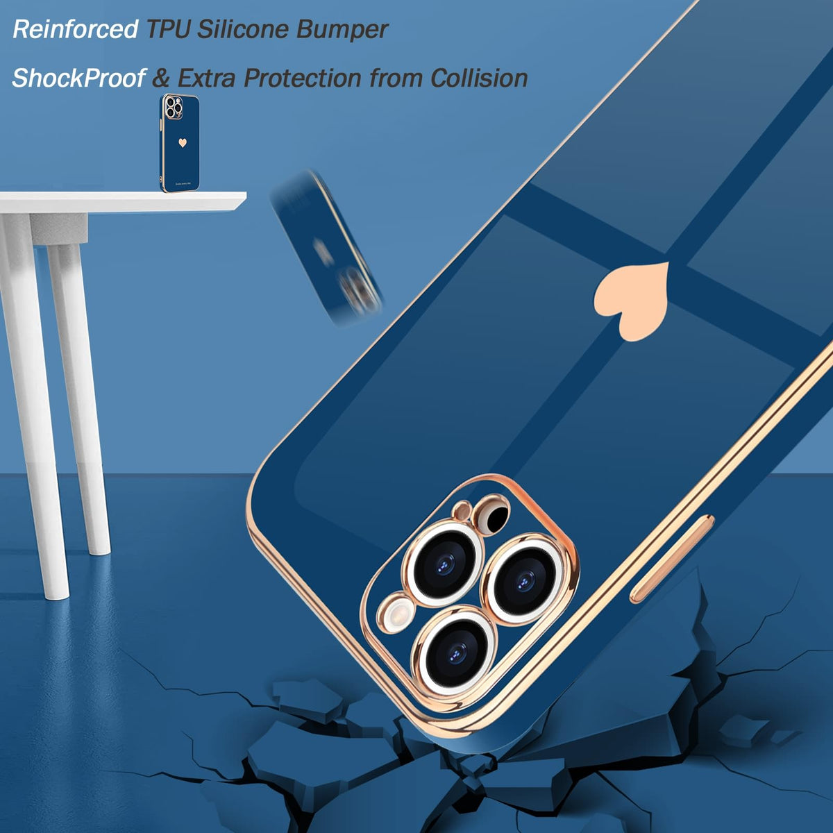Teageo Compatible With Iphone 13 Pro Case For Girl Women Cute Love Heart Luxury Plating Soft Back Cover Raised Camera Protection