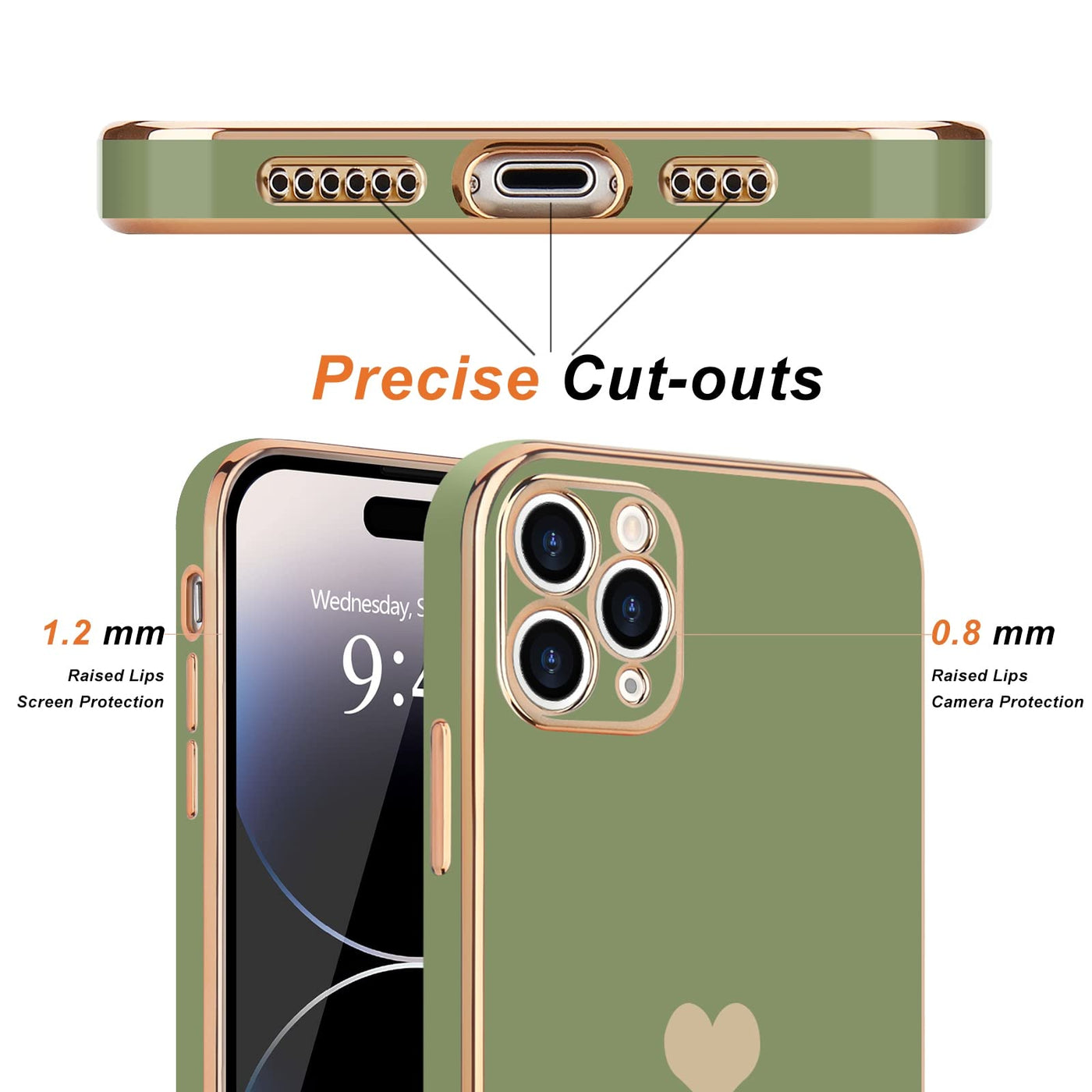 Teageo For Iphone 14 Pro Max Case For Women Girl Cute Love Heart Luxury Plating Soft Bling Back Cover Raised Full Camera Protect