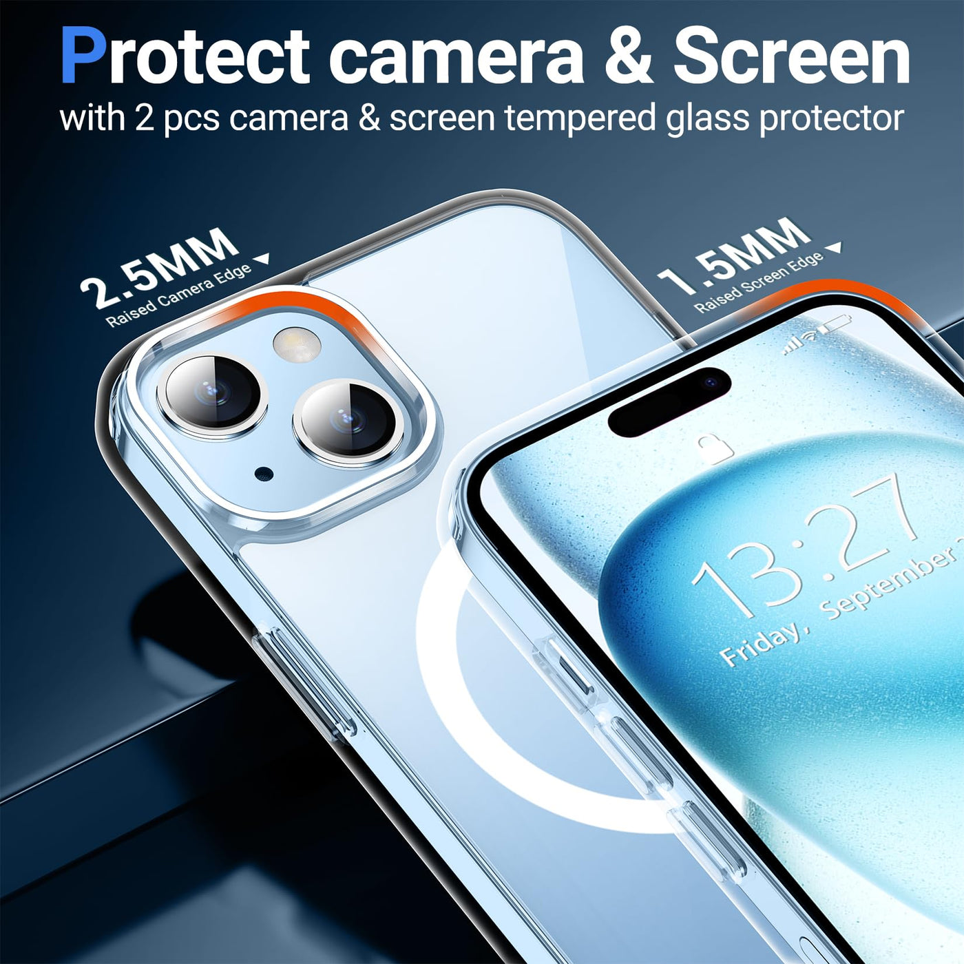 Temdan Designed For Iphone 15 Case Clear,[Compatible With Magsafe][Military Grade Shockproof][Non Yellowing] Slim Thin Phone Cas