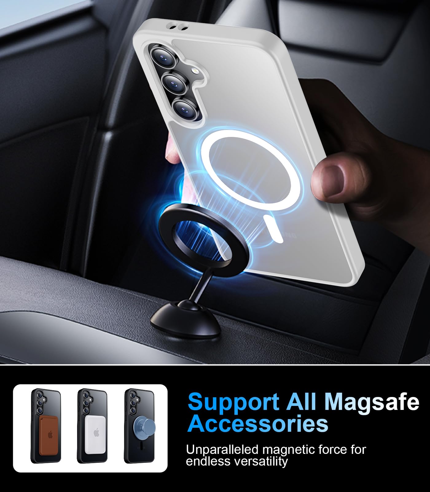 Temdan Magnetic For Samsung Galaxy S24 Fe Case, With [Tempered Glass Screen Protector][Compatible With Magsafe][Military Grade Shockproof] Slim Translucent Matte Phone Case For S24 Fe 6.7''- Clear