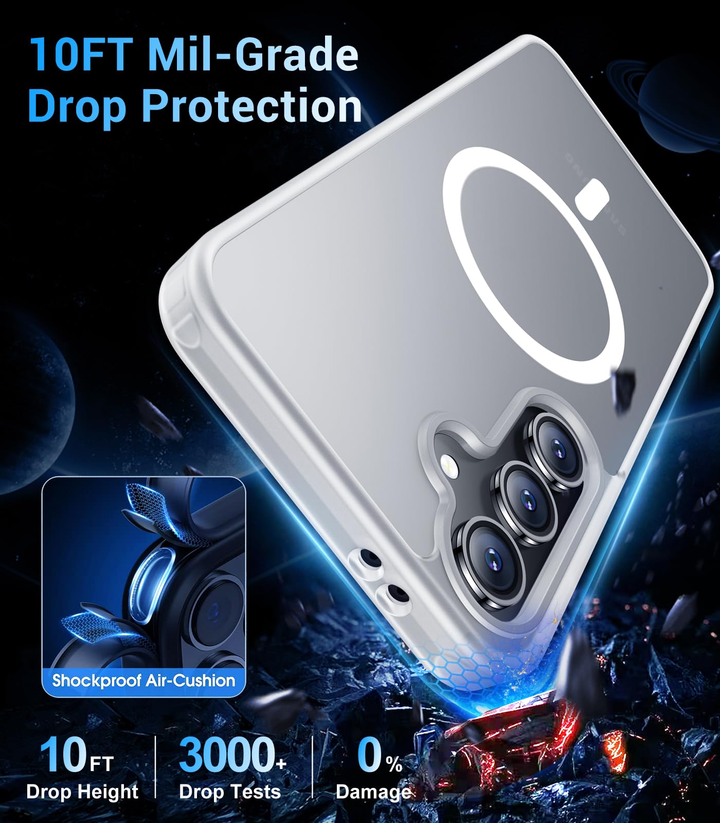 Q: How durable is the Temdan Magnetic case against drops?A: The Temdan Magnetic case is military grade shockproof and has been drop-tested over 3000 times to withstand drops from heights of up to 12 feet, ensuring your Samsung Galaxy S24 FE is well-protected.