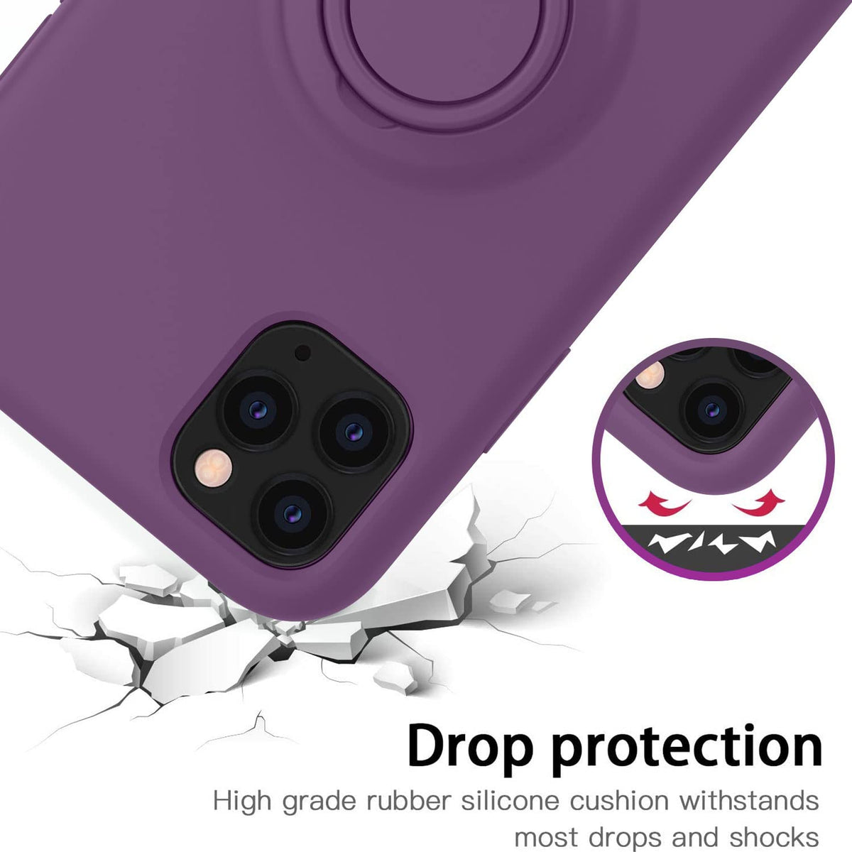 Thomo For Iphone 11 Pro Max Case [Liquid Silicone Ring Holder Kickstand] [Anti Scratch Microfiber Lining], Full Body Protective