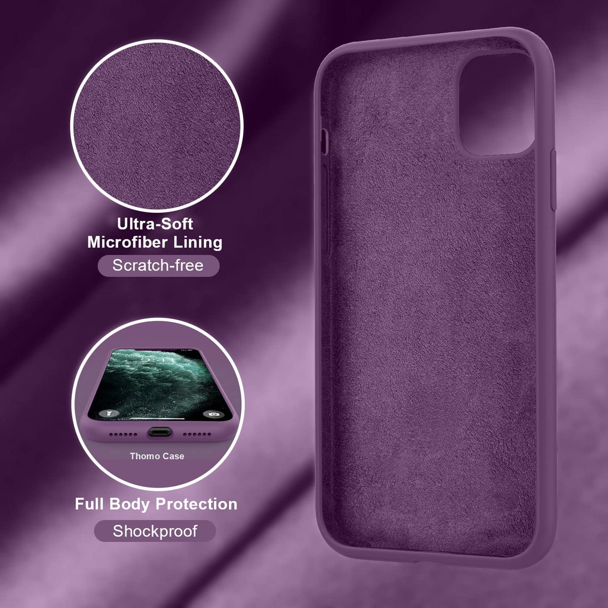 Q: What is the material of the Thomo case and how does it feel?A: The Thomo case is made of liquid silicone, featuring a soft microfiber lining that provides a silky smooth feel and added protection for the back of your phone.