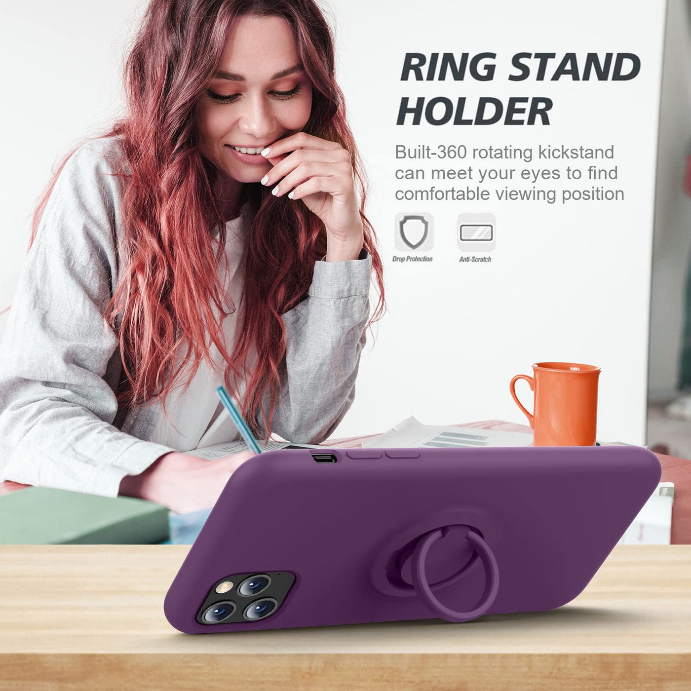 Q: How does the built-in kickstand work?A: The built-in 360-degree adjustable ring holder serves as a kickstand, allowing you to prop your iPhone 11 Pro Max for hands-free viewing of videos or video calls.