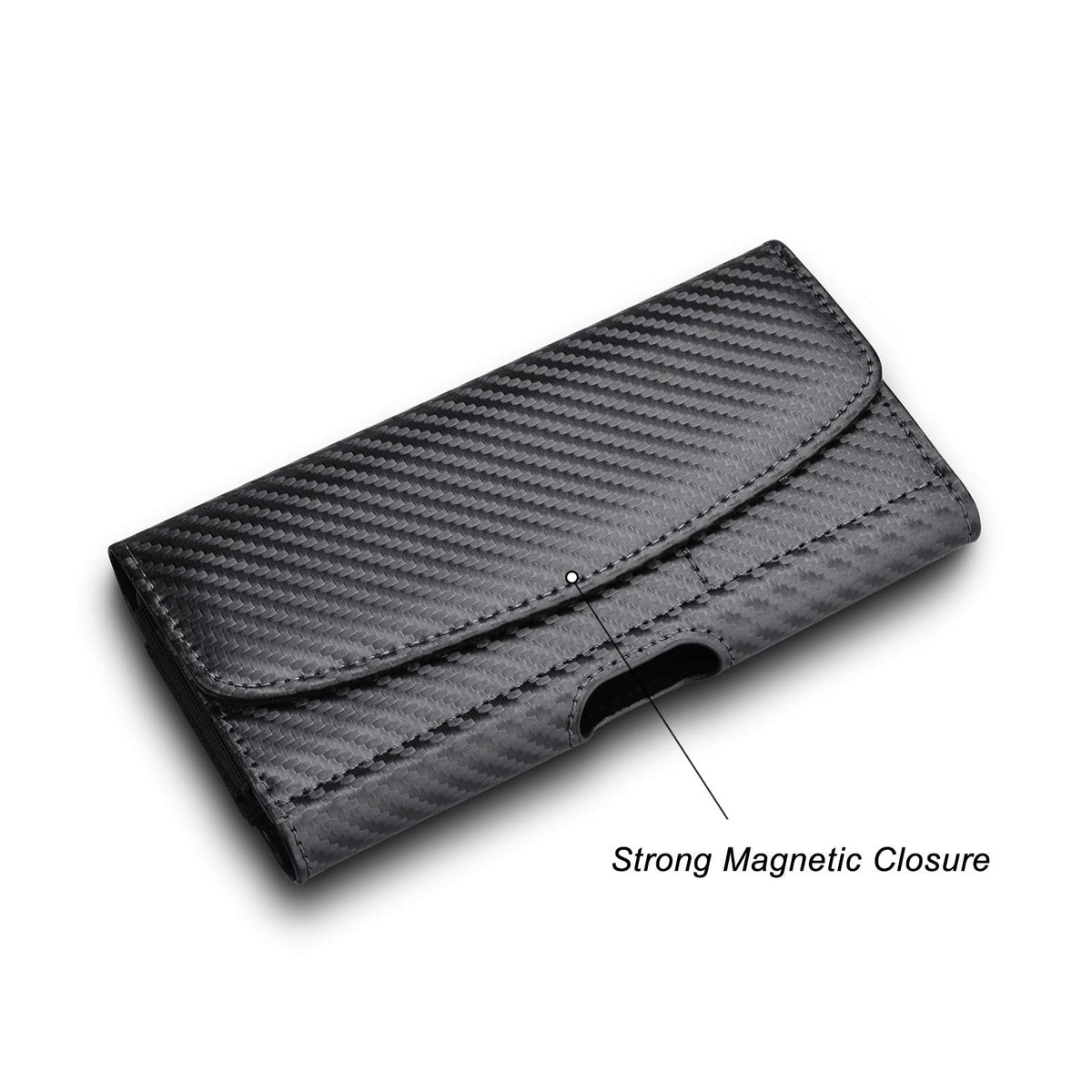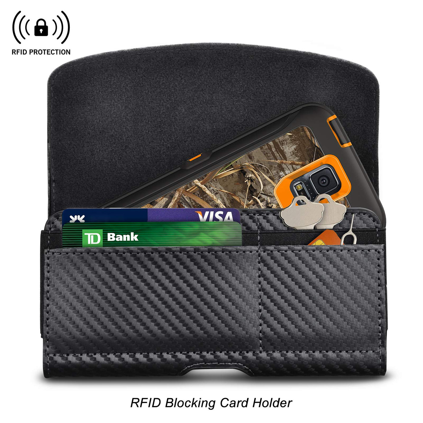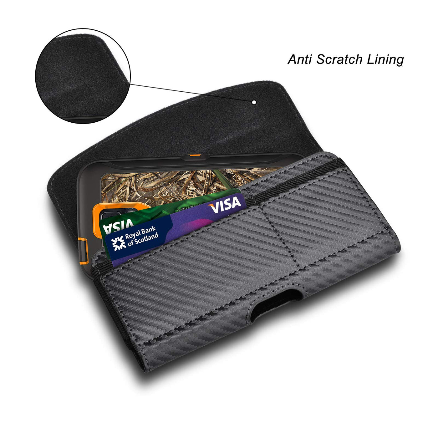 Q: Can I carry cards and cash in the Tiflook Large Phone Holster?A: Yes, the Tiflook Large Phone Holster features an RFID-blocking card holder with two slots: a larger slot for credit cards and IDs, and a smaller slot for keys or SIM cards, allowing you to carry essentials conveniently.