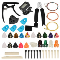 Timesetl All-In-1 Guitar Accessory Guitar Repairing Kit Instrument Tool Kit A Must Have Basic Tool Kit To Set Up And Adjust Acoustic Guitars For Guitar Players, Hobby Guitarists And Beginners. High Quality: All The Guitar Accessories Are With Very Good Quality, Durable And Cost Effective. They Are A Nice Combination For Guitar Starters, Help To Changing String Much Easier And Sooner, These Guitar Tools Can Be Very Helpful To You. Features: -Good Quality, Durable And Cost Effective. -Perfect For Setting Up And Adjust Acoustic Guitars For Guitar Players, Hobby Guitarists And Beginners. -A Nice Gift For Guitar Starters, Help To Changing String Much Easier And Sooner, These Guitar Tools Can Be Very Helpful. Specification: Material: Abs, Stainless Steel Color: White, Black, Yellow, Red, Multicolor Package Included: 1 X Guitar String Winder Cutter Pin Puller 1 X Guitar Capo 1 X Guitar Tuner 18 X Guitar Strings (3 Sets, 6Pcs/Each Set) 15 X Guitar Picks (Random Color Delivery) 12 X Guitar Bridge Pins 4 X Guitar Silicone Finger Protector 5 X Bonus Finger Picks (Random Color) 1 X Guitar Bone Bridge Saddle 1 X Guitar Bone Bridge Nut