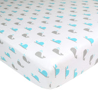 Tl Care Printed 100 Cotton Jersey Knit Fitted Crib Sheet For Standard Crib And Toddler Mattresses, Aqua Whale, 28 X 52, For Boys