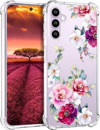 Topgraph Samsung Galaxy S23 Case Cute Floral Flower Clear For Women Girly Designer Girls, Transparent Phone Case Floral Flower D