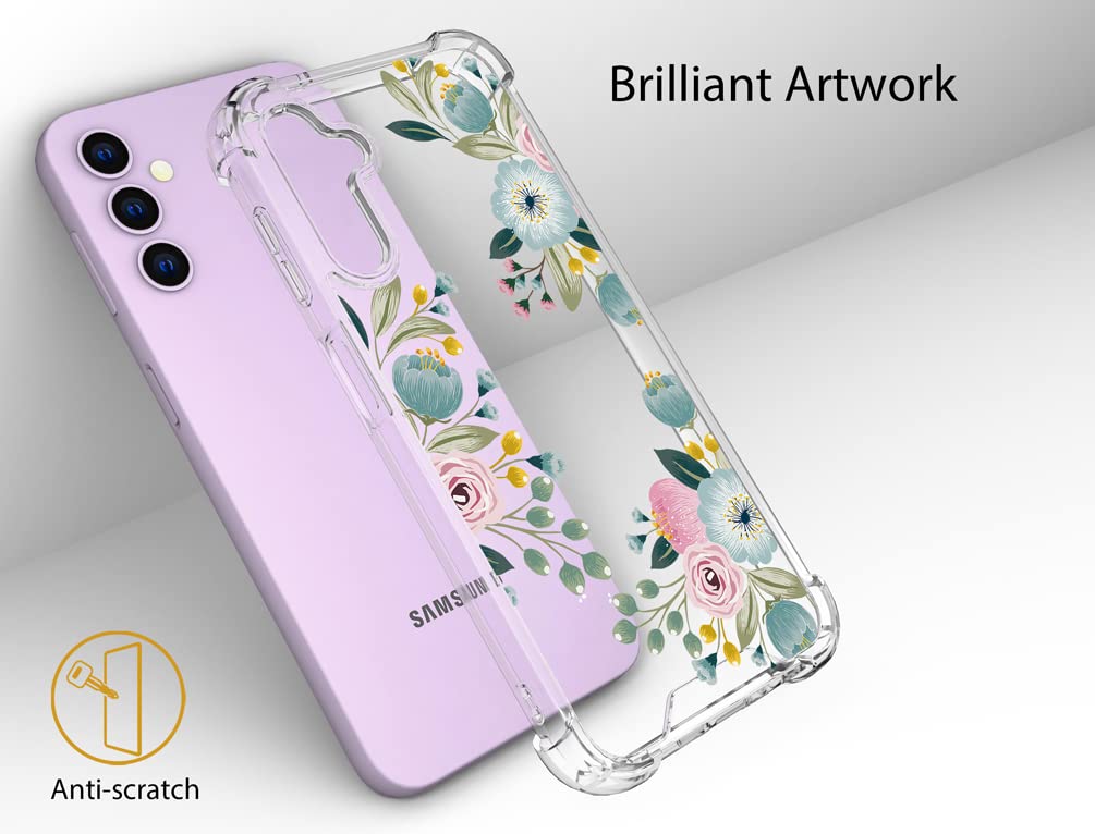 Topgraph Samsung Galaxy S23 Plus + Case Cute Flower Floral Clear For Women Girly Designer Girls, Transparent Phone Case Flower D