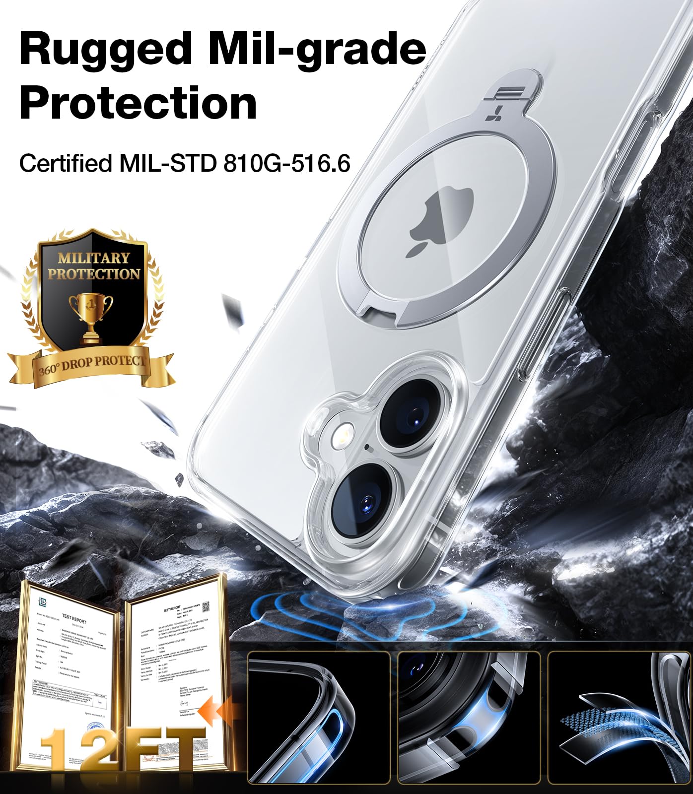 Torras 360 Spin Magnetic Stand For Iphone 16 Case 6.1 Inch, Compatible With Magsafe, 12Ft Military Grade Protection, Shockproof