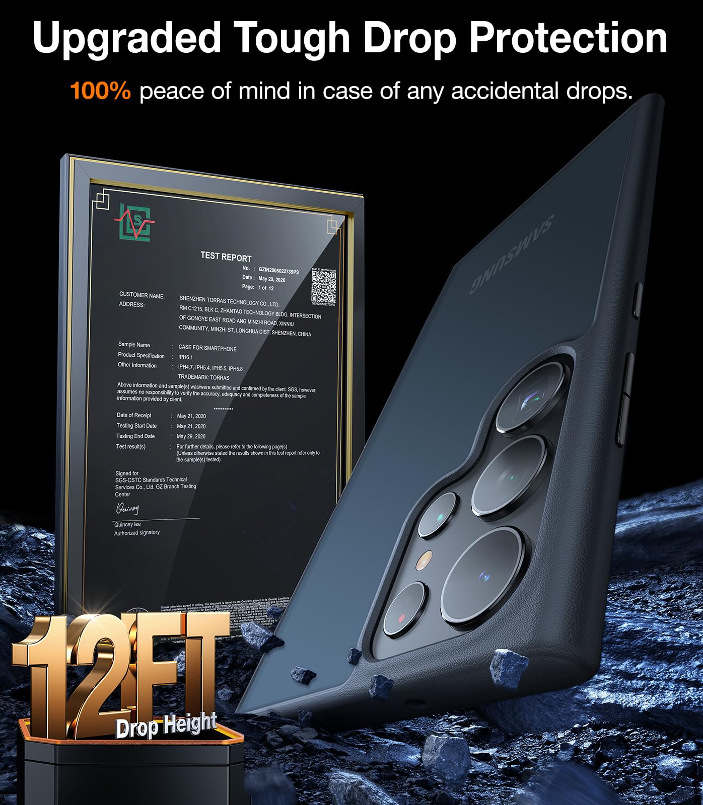 Torras Shockproof For Samsung Galaxy S24 Ultra Case 6.8'',12Ft Military Grade Drop Tested, Protective Hard Semi Clear Matte Back