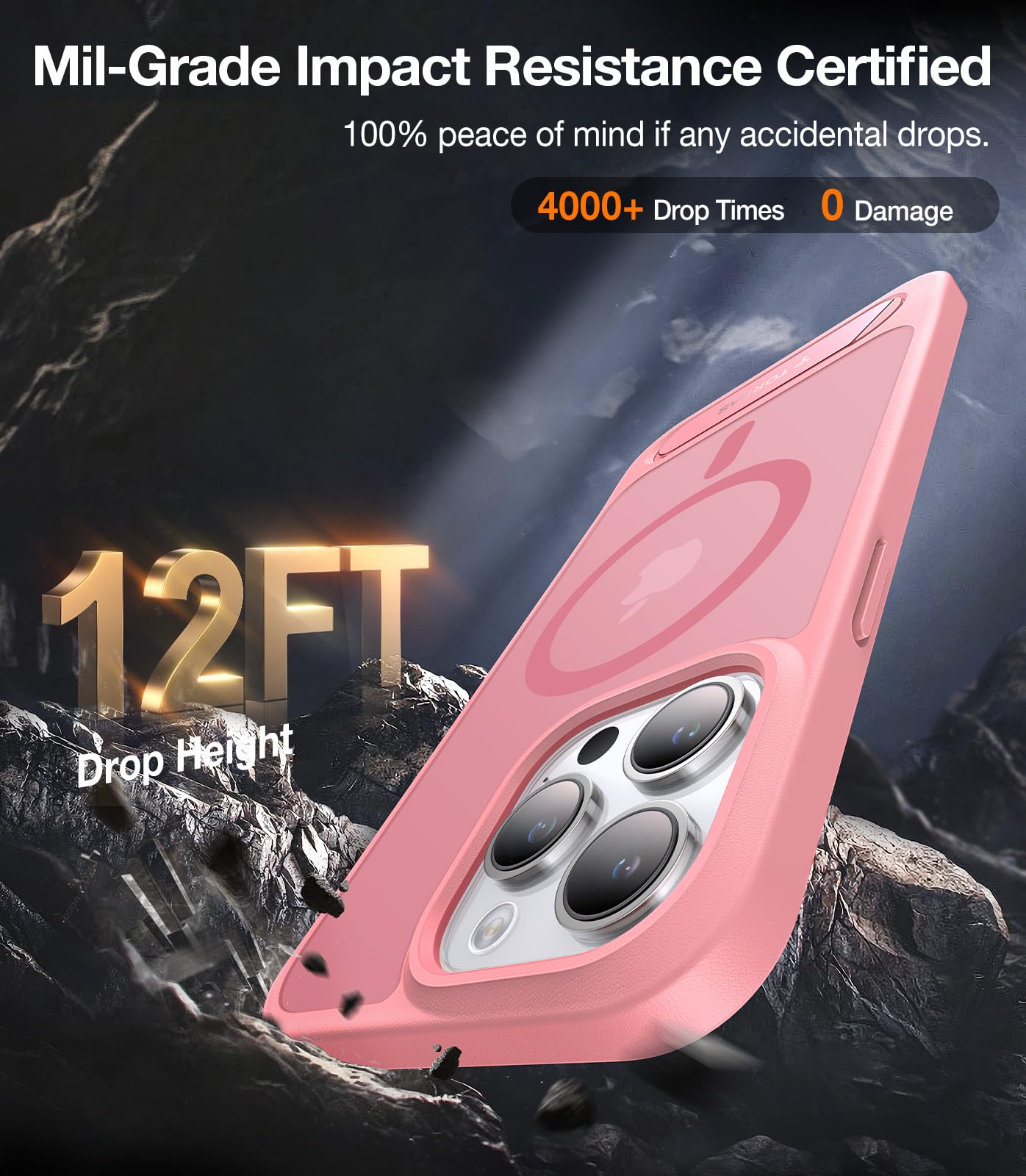 Q: How does this case protect my iPhone from drops and shocks?A: The TORRAS case incorporates advanced protective features, including 1.2mm raised screen lips, 0.8mm lifted camera bezels, and 360° Air cushions inside the corners, designed to absorb impacts from drops and collisions.