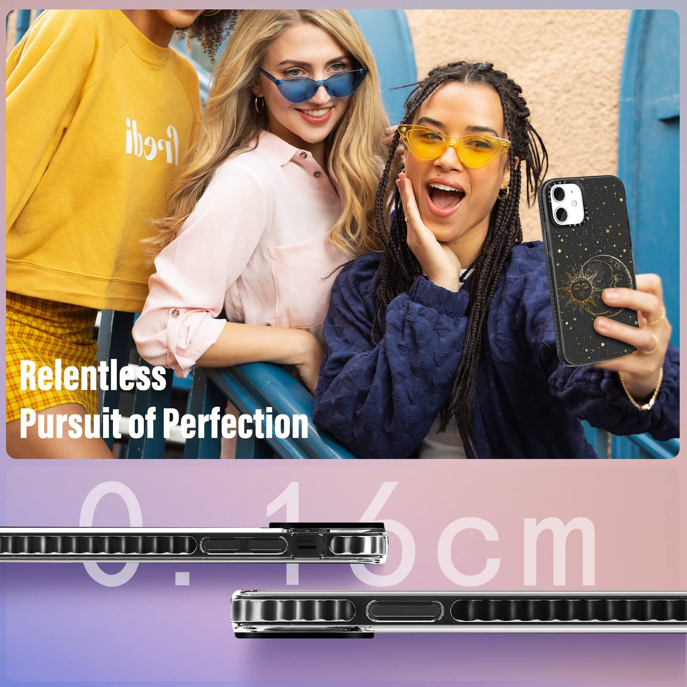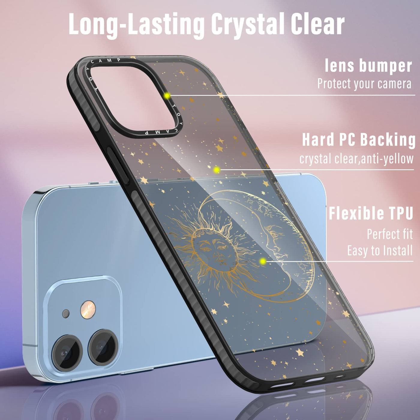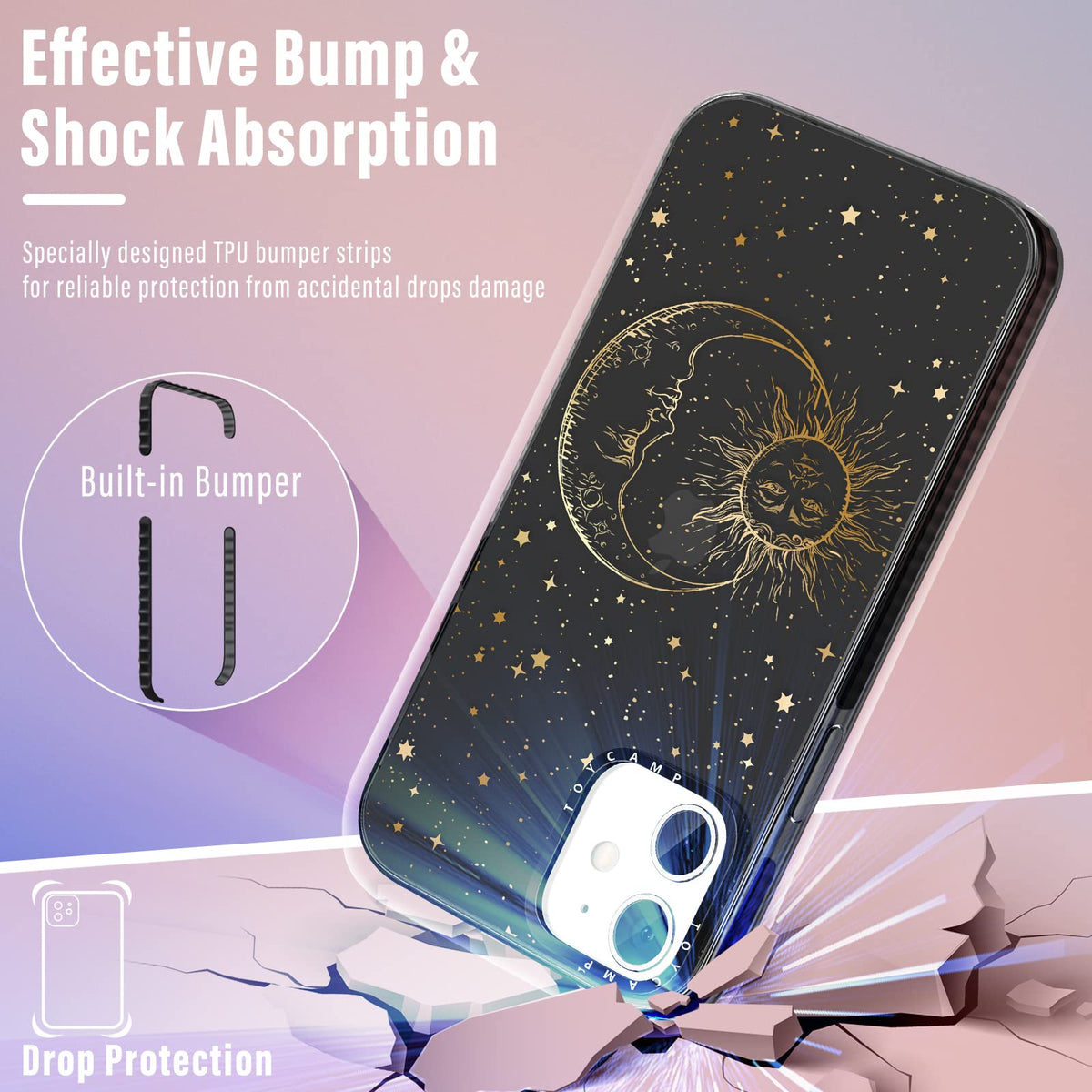 Toycamp For Iphone 12/12 Pro Case, Sun Moon Stars Design For Women Mens Girls Boys Teens Cool Fantasy Glitter Print Case With Ri
