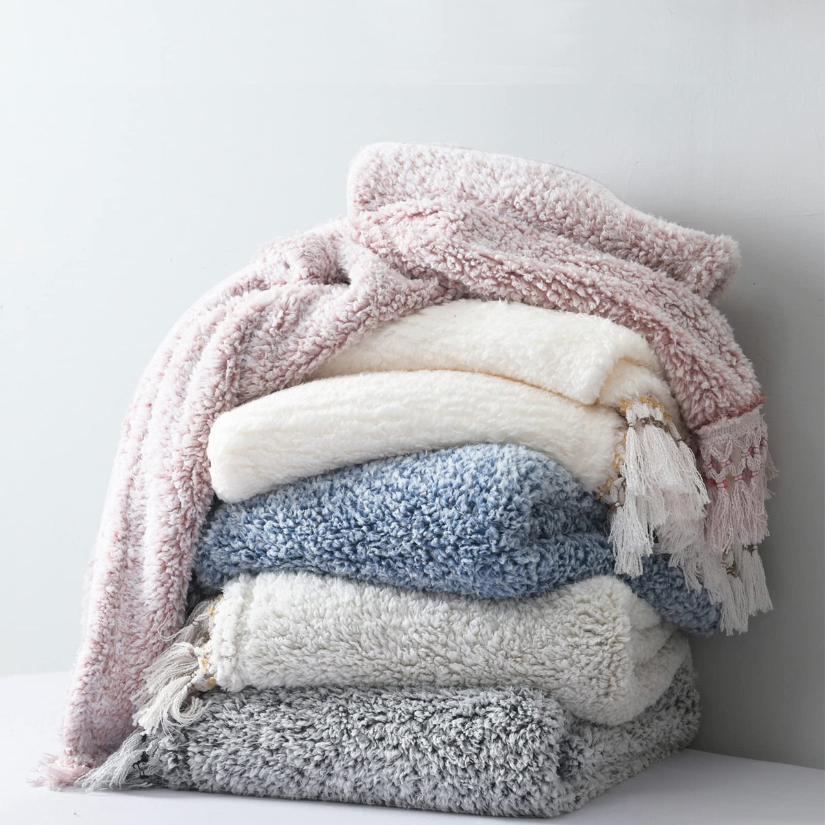 Q: What makes this blanket suitable for different decor styles?A: The blanket features a subtle ombre color and decorative tassels that add a touch of bohemian flair, making it a versatile addition to various home decor styles.