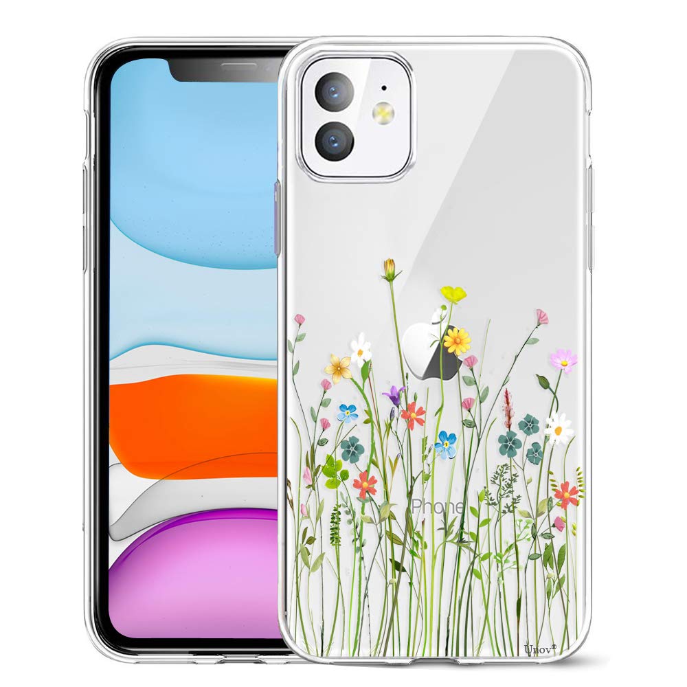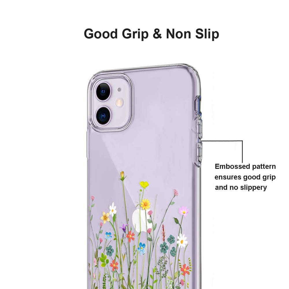 Unov Case Compatible With Iphone 11 Clear With Design Slim Protective Soft Tpu Bumper Embossed Floral Pattern 6.1 Inch (Flower B