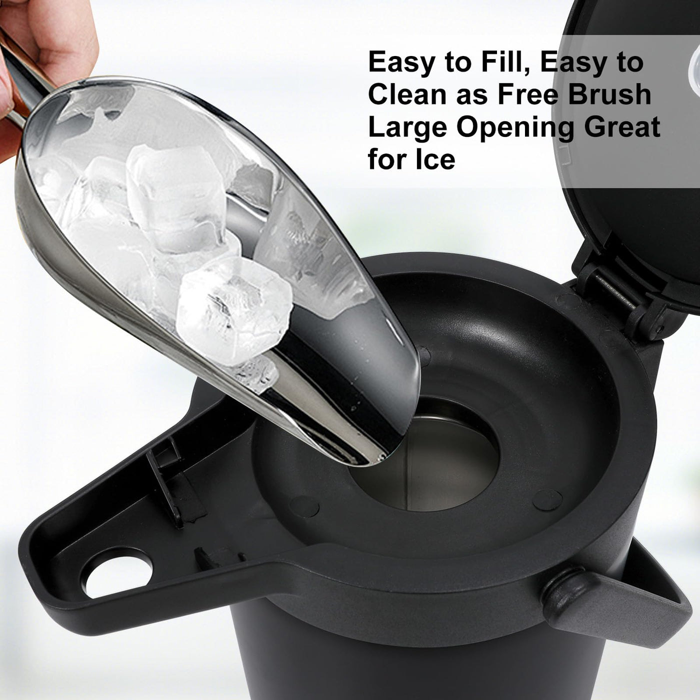 Q: Is the Airpot Coffee Dispenser easy to clean?A: Yes, the Airpot Coffee Dispenser features a wide-mouth top for easy filling and cleaning. It is recommended to hand wash with warm soapy water, and a cleaning brush is included to help clean the bottom.