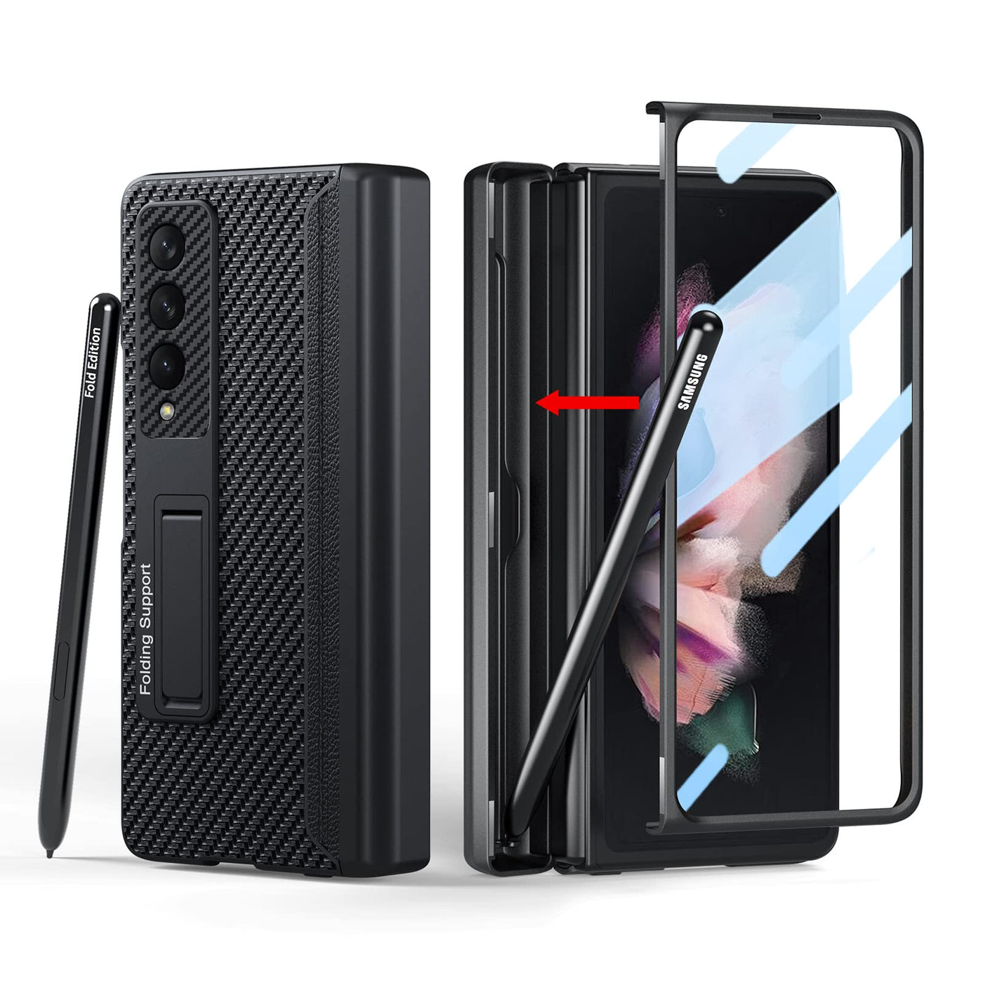 Q: Does this case have a built-in S Pen holder?A: Yes, this case features a built-in hidden S Pen holder that securely accommodates your S Pen, preventing it from being lost or scratched.
