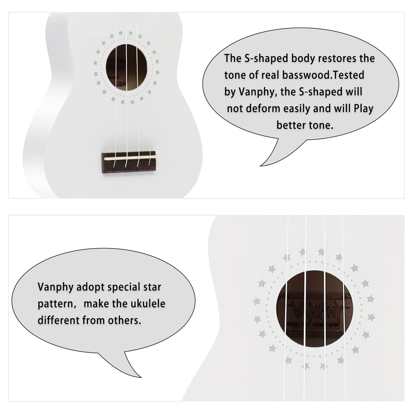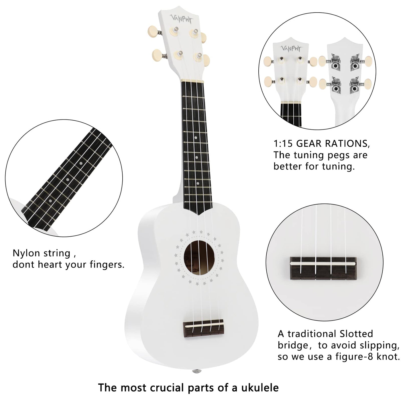 Vanphy Soprano Ukulele For Beginner Kids With Gig Bag,21 Inch Uke For Starter, Hawaiian Soprano Ukalalee Polishing Adults, Bassw