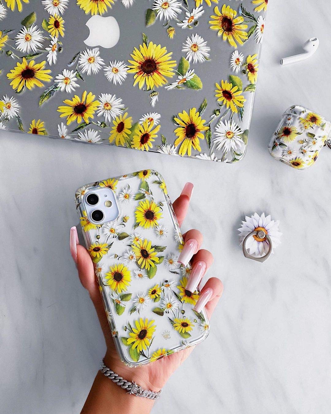 Smell The Flowers With Our Sunflower Daisy This Protective Clear Case Has A Gorgeous Hand-Drawn Sunflower & Daisy Pattern With A Matching Clear Front Bumper For Added Protection Against Drops Looks Great On All Phone Colors