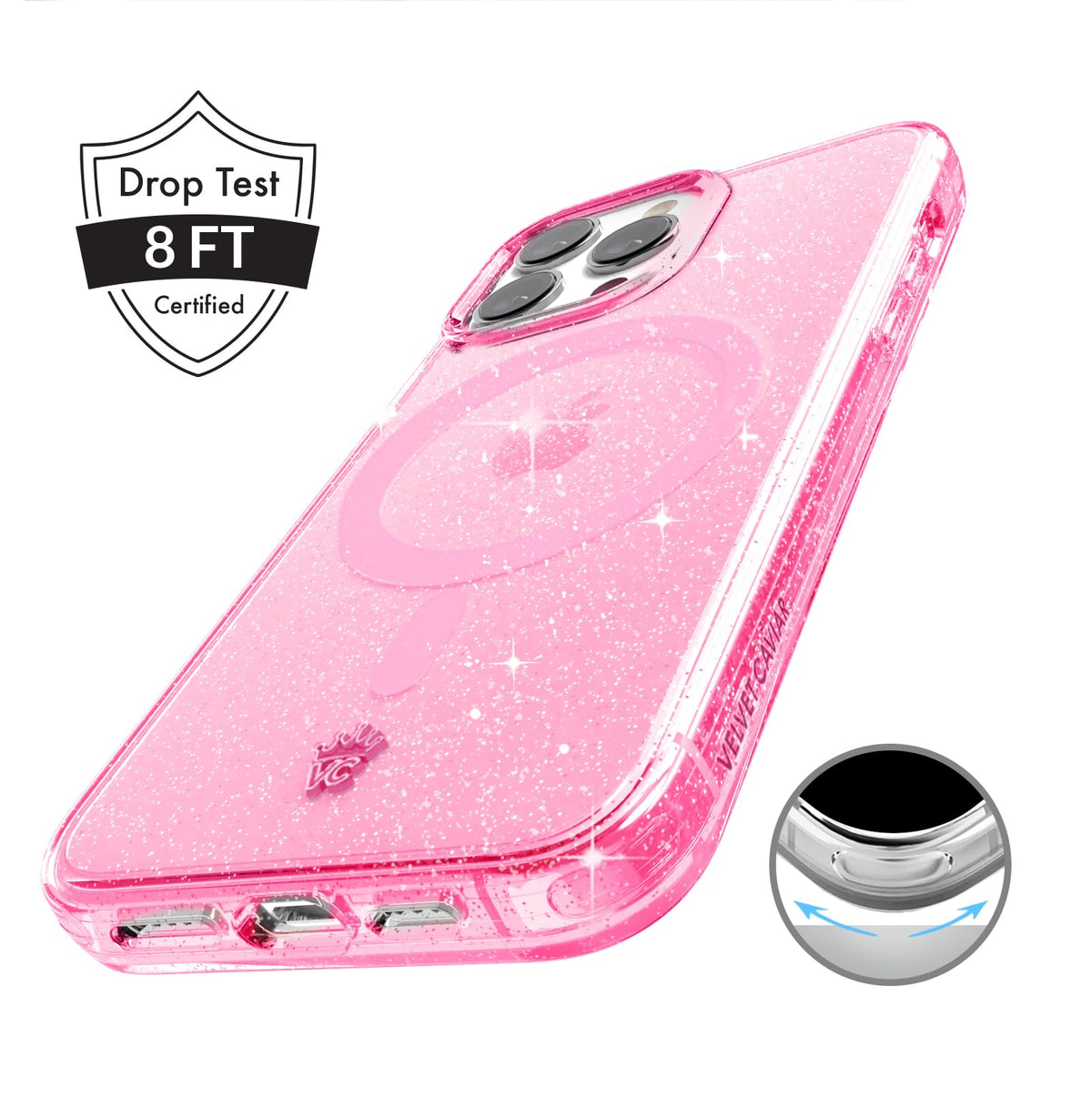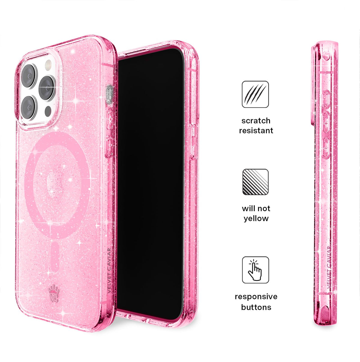 Velvet Caviar Compatible With Iphone 15 Pro Max Case Pink Glitter For Girls [8Ft Drop Tested] Compatible With Magsafe Protecti