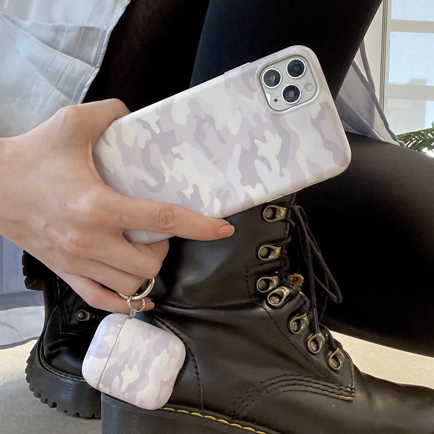 Inspired by big, fluffy clouds in a perfect blue sky, this protective camo case features a soft white and gray color theme and comes in a matte finish. It also has a matching light gray bumper for added protection against drops!
