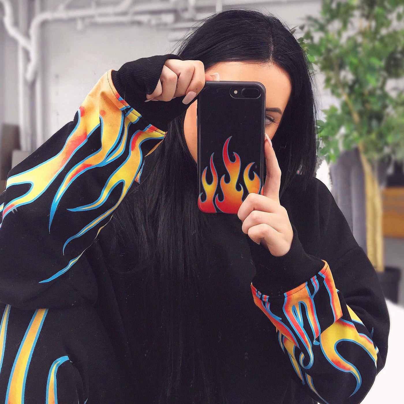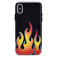 Feel the heat with this awesome black protective case featuring a bright red and yellow flame with a shiny, metallic blue outline. It comes in a gloss finish with a matching black bumper for added protection against drops!