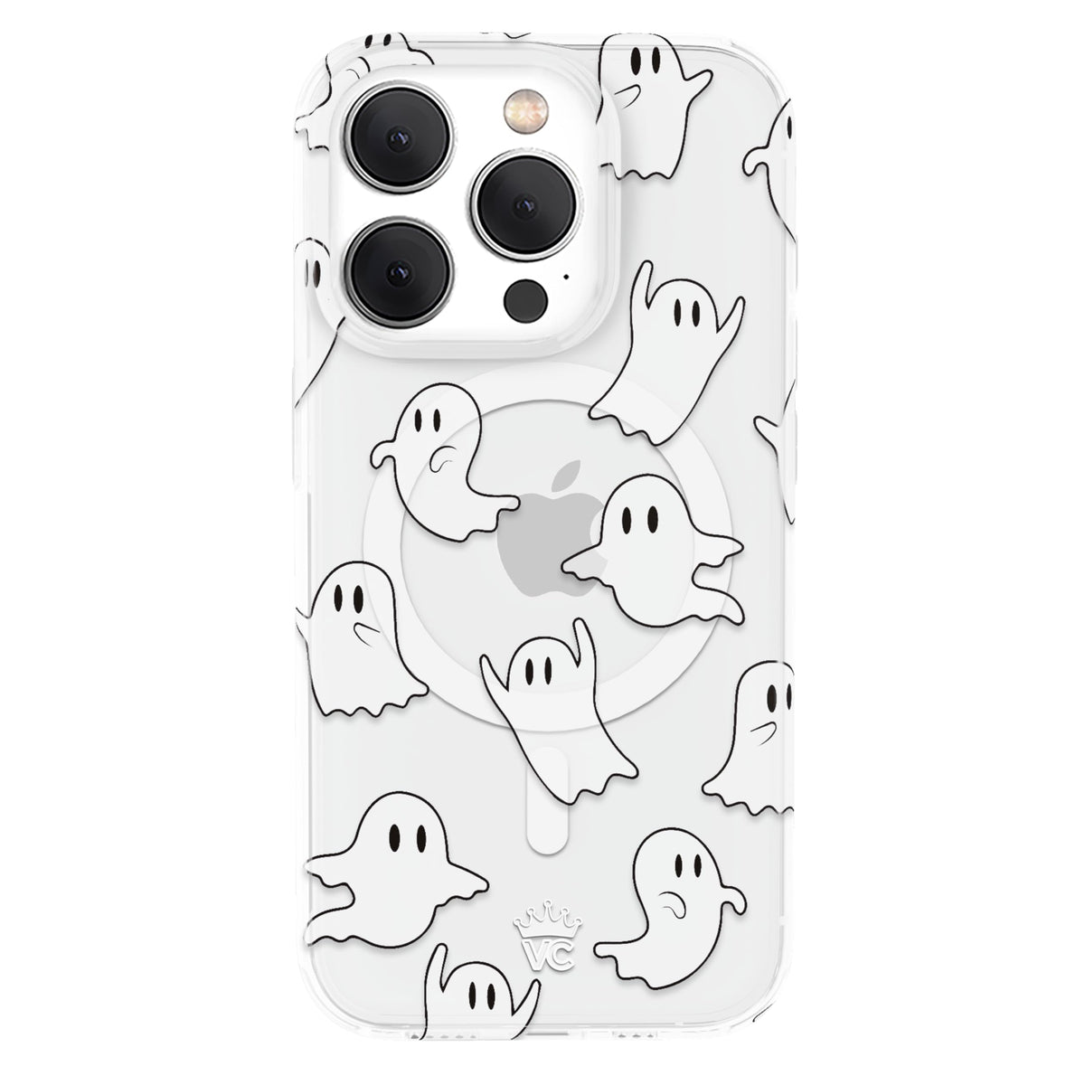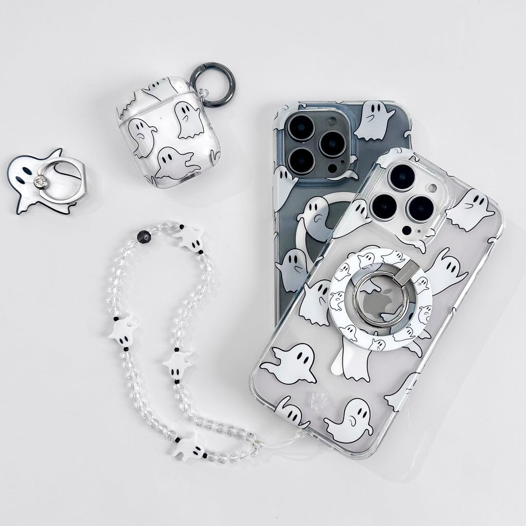 BOO! This protective clear case features cute friendly ghosts throughout. Happy Halloween!
