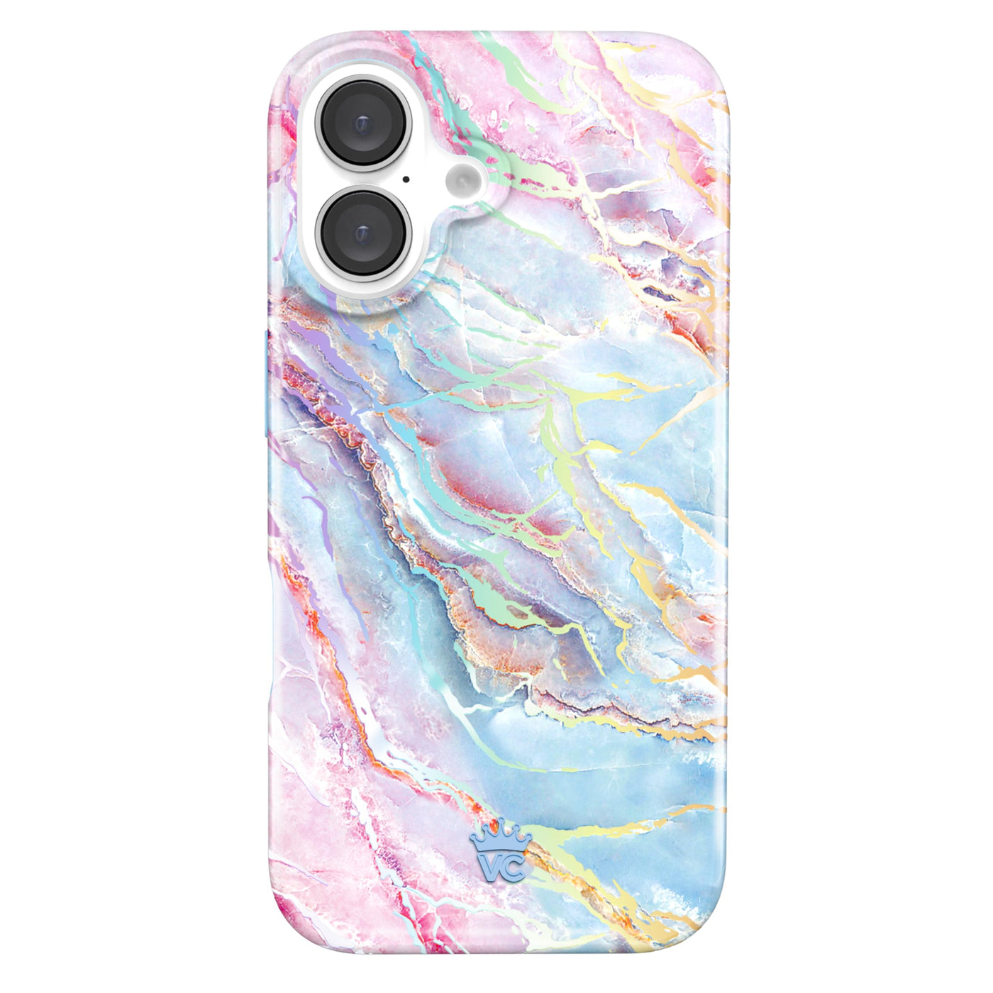 Q: What design features make this case unique?A: The Velvet Caviar iPhone 16 case features a stunning holographic marble design in pastel blue and pink colors, hand-drawn by artists in NYC, combining style with protection.
