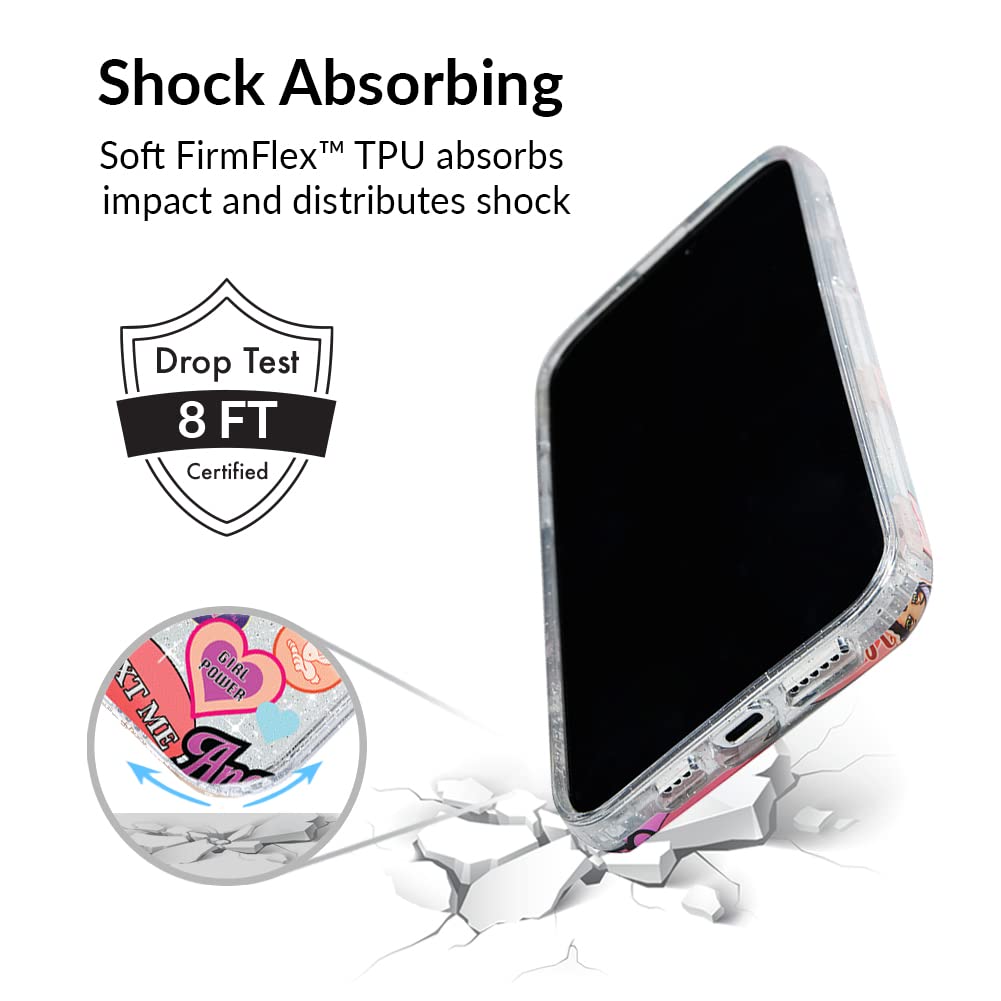 Cloe, Sasha, Yasmin And Jade Adorn This Y2K Inspired Design This Pretty And Protective Case Has A Glossy Finish With Silver Glitter Sprinkled Into The Base And Bumper