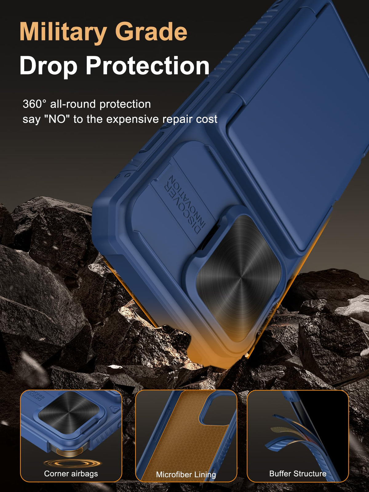 Q: What kind of protection does the case offer for the camera lens?A: The Vihibii wallet case features a sliding camera lens protection cover that is 2mm thick. This allows you to easily slide the cover over the camera lens when not in use, protecting it from scratches and damage.