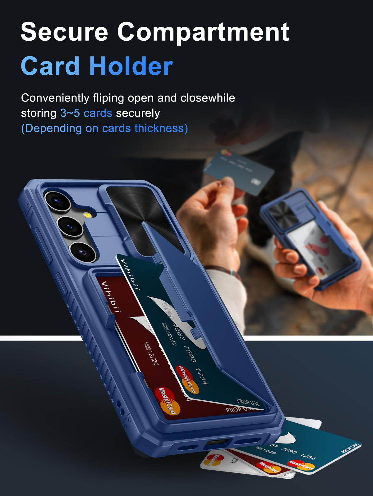 Vihibii High-Quality After-Sales Service Provide More Convenience And Security For Digital Life We Pursue To Create More Convenient And Better Protective Mobile Phone Cases With Innovative Design And High-Quality Materials Product Parameters Material- Pc &Amp; Silicone Compatible Models- Samsung Galaxy S24 Plus 5G 6.7'' ( Released In 2024 ) Packing Type- Environmentally Friendly Box Special Features- Card Holder, Slide Camera Cover Samsung Galaxy S24 Plus Case, Provide 360-Degree Protection For Your Phone