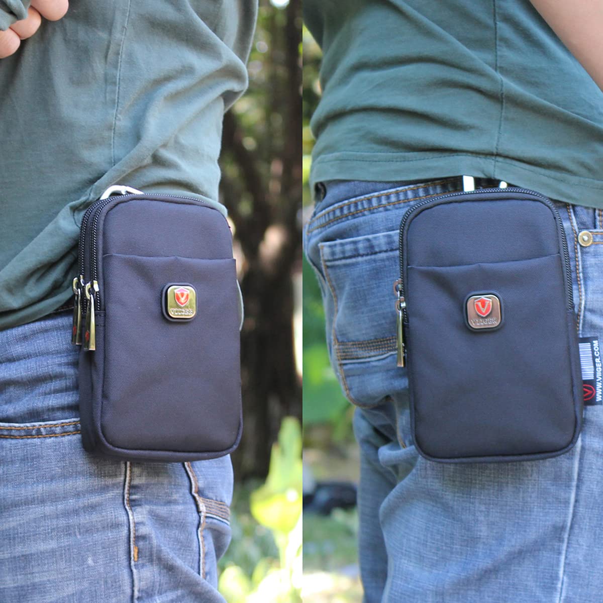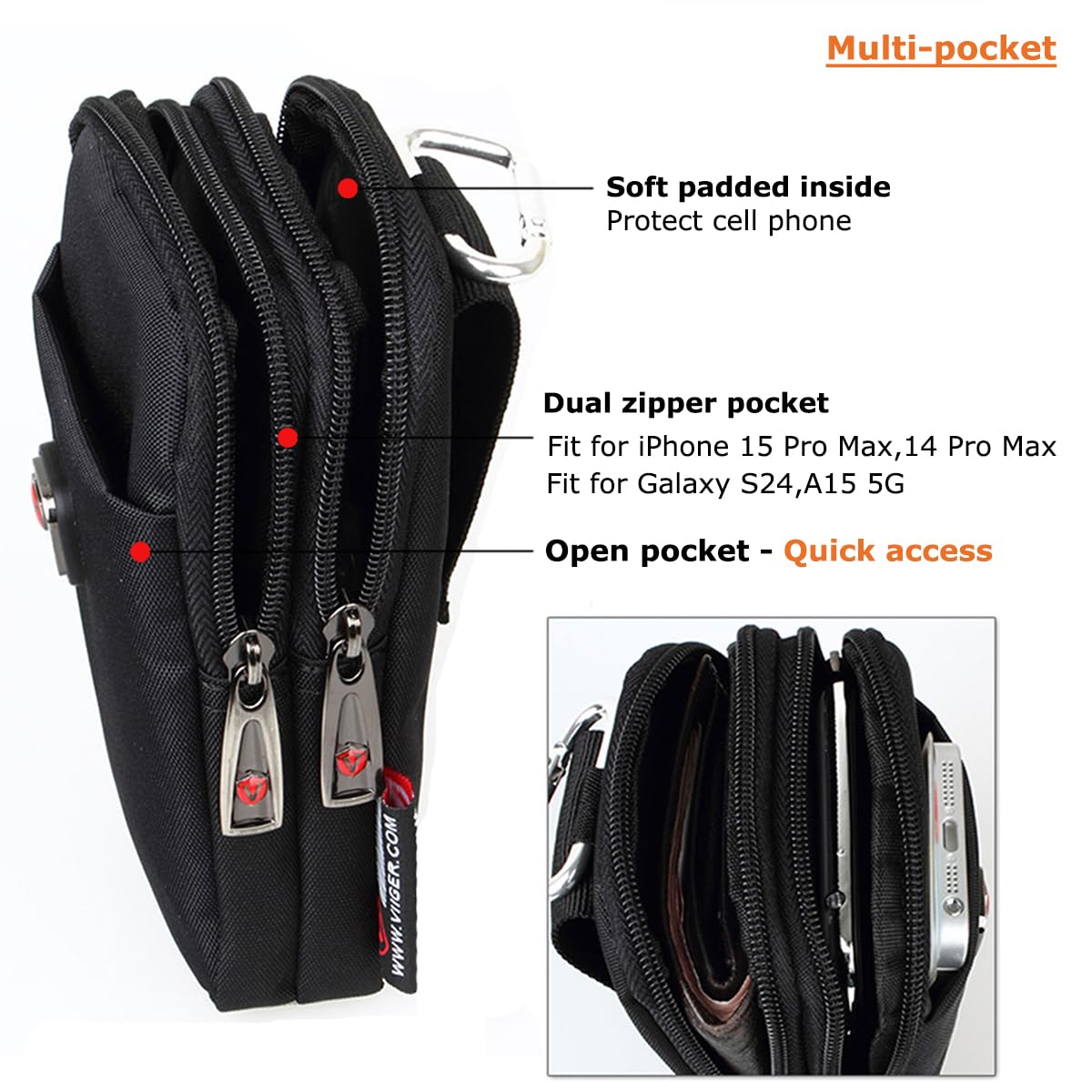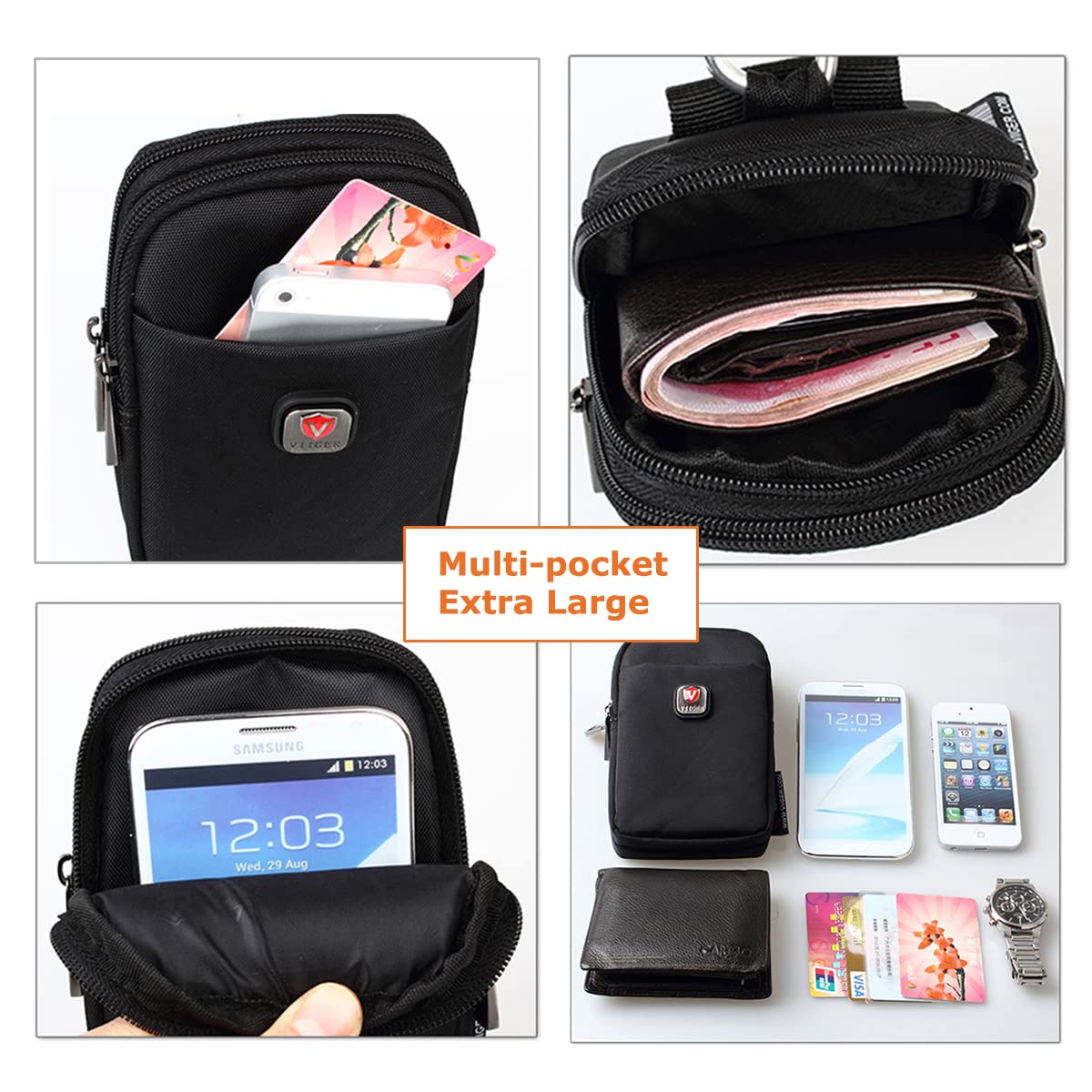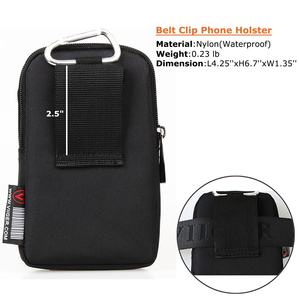 Viiger Versatile Nylon Dual Phone Holster Cellphone Belt Case Holder Mens Belt Pouch W/Clip Smartphone Belt Loop Pouch Bag 2 Zip