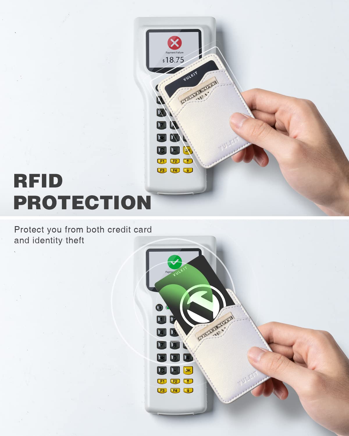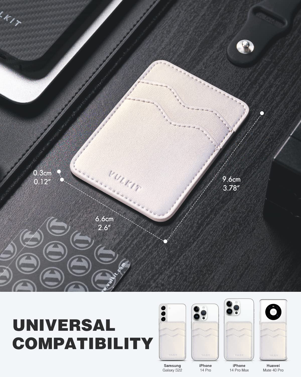 Vulkit Phone Card Holder Slim Leather Adhesive Pocket Rfid Blocking Credit Card Sleeves Sticker For Back Of Smartphone(Pearl Whi