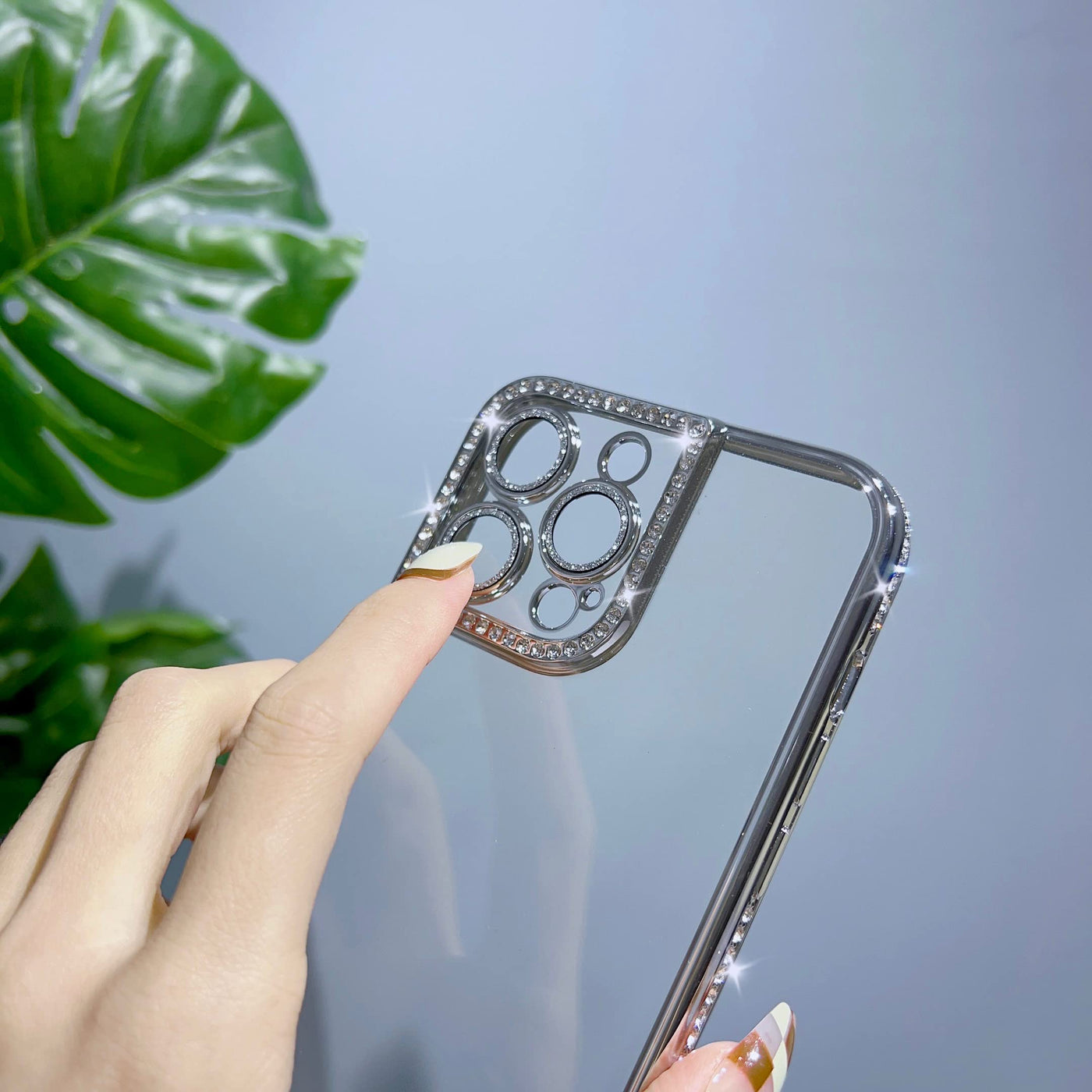 Wahhle Designed For Iphone 14 Pro Max Glitter Case, Luxury Plating Cute Bling Diamond Inlay Phone Cover For Women Girls With Bli